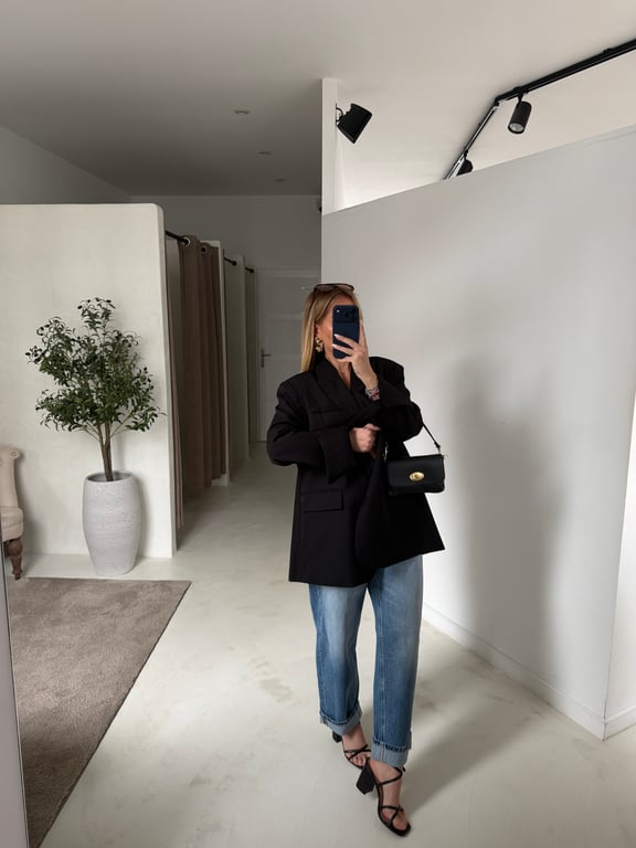 Blazer oversize noir dos nu à nouer : la pièce chic et audacieuse à avoir absolument dans son dressing. Ce blazer femme revisite le classique avec une coupe ample ultra tendance et un dos ouvert sublimé par un lien à nouer. Parfait avec un pantalon, un jean ou une jupe, il structure la silhouette tout en apportant une touche glamour. Idéal pour un look de jour comme de soirée, ce blazer noir oversize s’associe facilement à tous vos hauts et accessoires pour un style moderne et féminin.