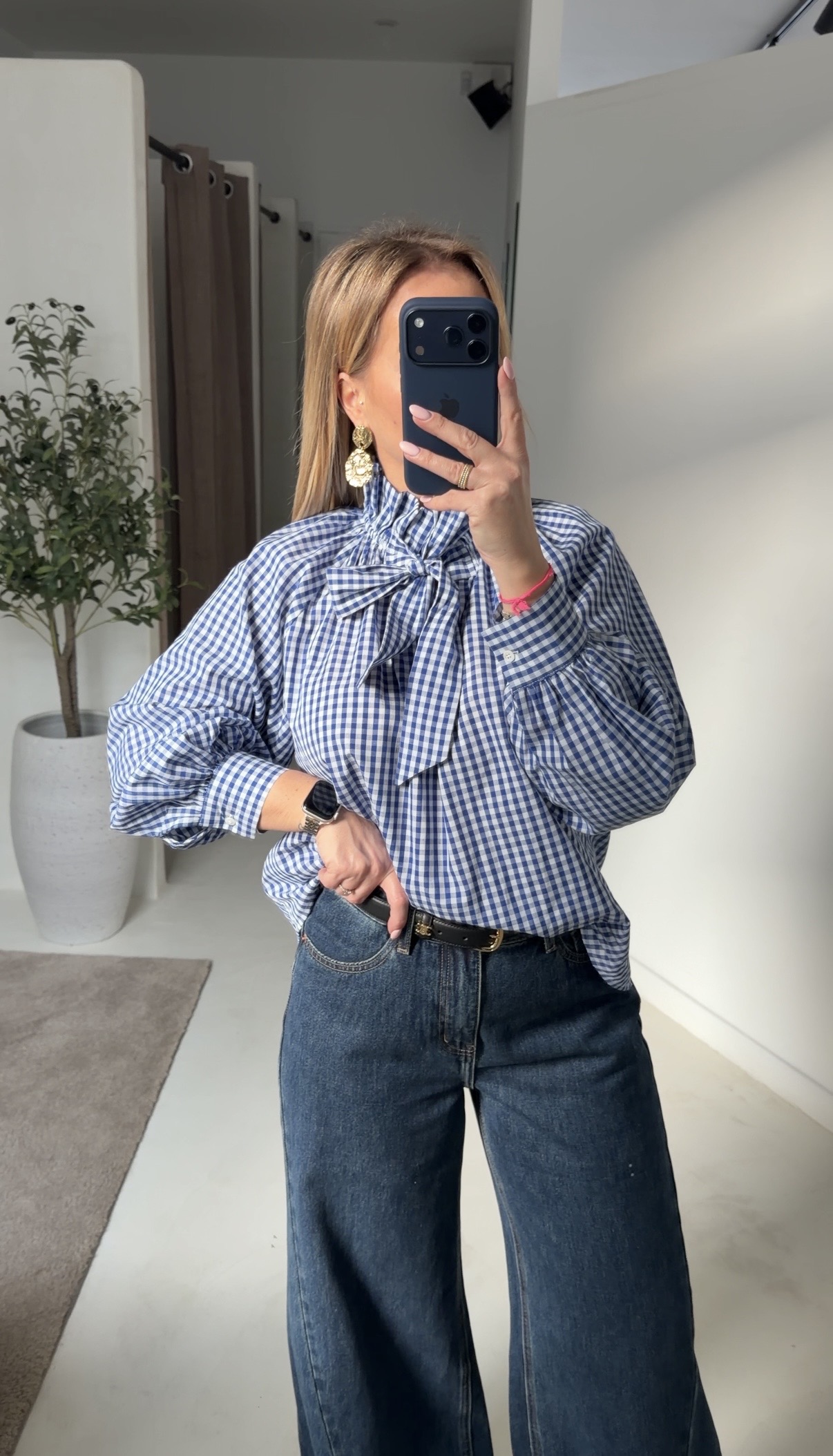 Cette blouse à carreaux bleu et blanc est une pièce élégante et intemporelle, parfaite pour un look chic et féminin 🤍