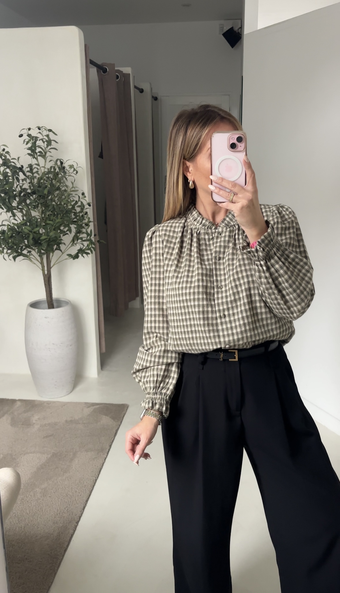 Blouse femme à carreaux verts, un basique chic et tendance ! Sa coupe confortable et ses manches longues en font une pièce facile à porter au quotidien. À associer avec un jean, un pantalon ou une jupe pour un look casual et moderne
