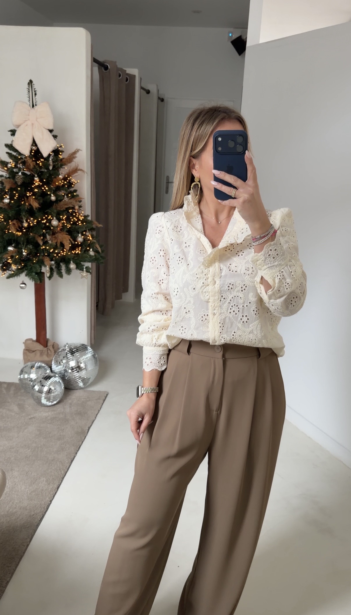 Romantique et raffinée, cette blouse couleur crème séduit par ses broderies fleuries délicates et ses détails ajourés qui subliment la silhouette. Son col montant élégant apporte une touche chic et intemporelle, idéale pour des looks féminins et sophistiqués.