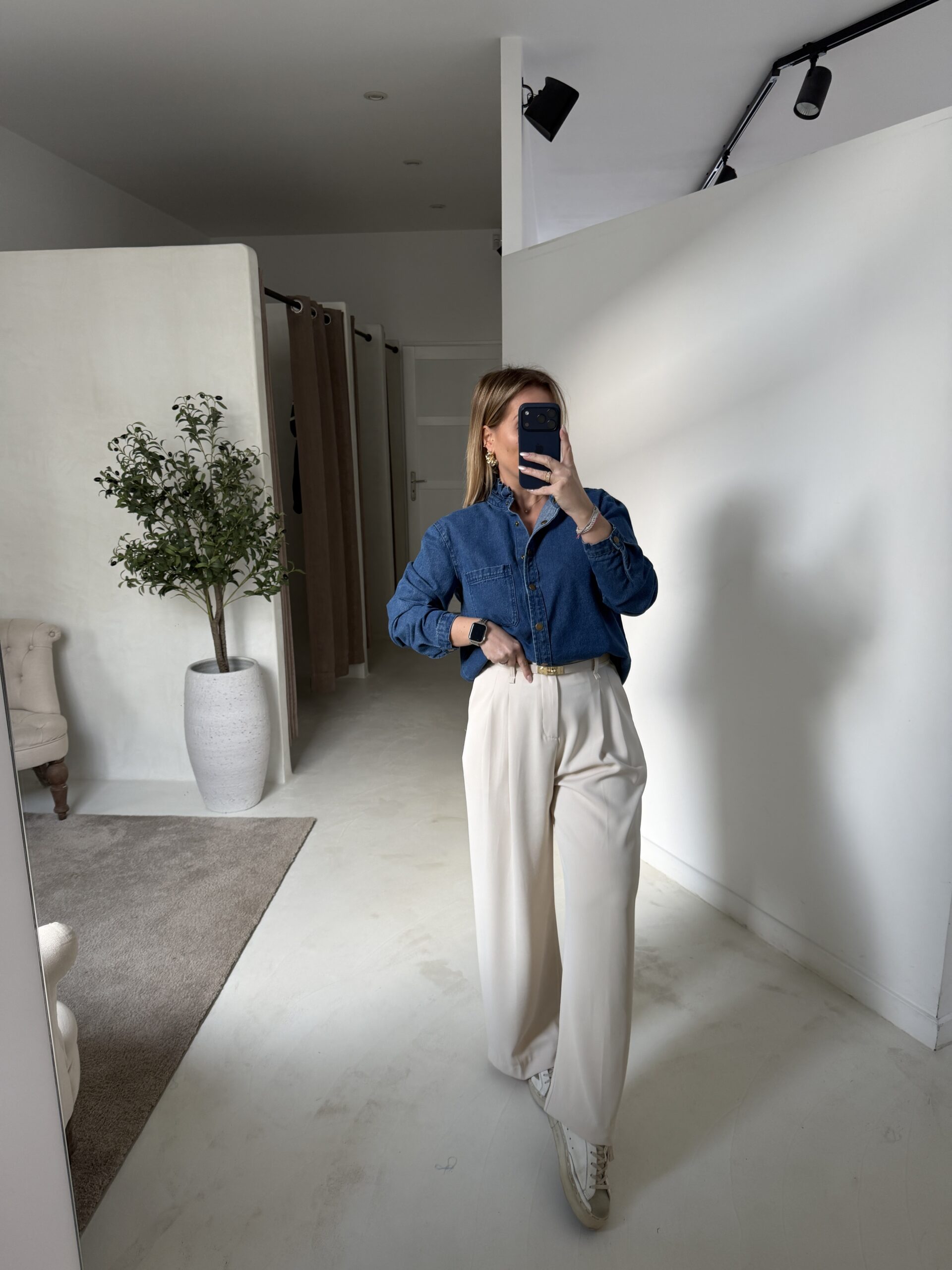 Blouse en jean avec poche sur le devant, casual et féminine. Sa coupe confortable et son tissu léger en font une pièce facile à porter au quotidien.