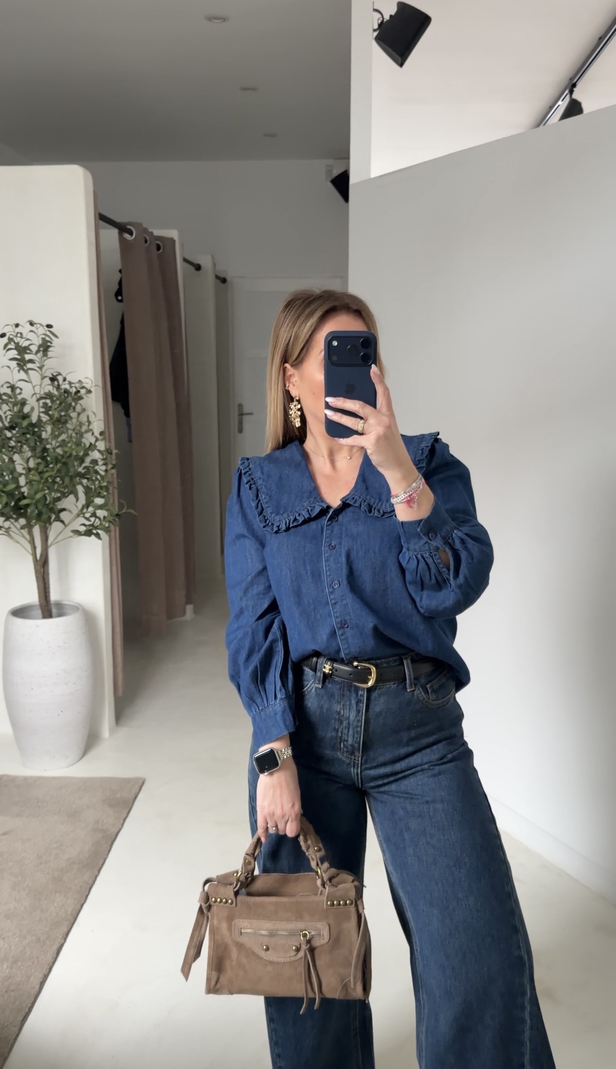 Blouse en jean brut avec grand col claudine