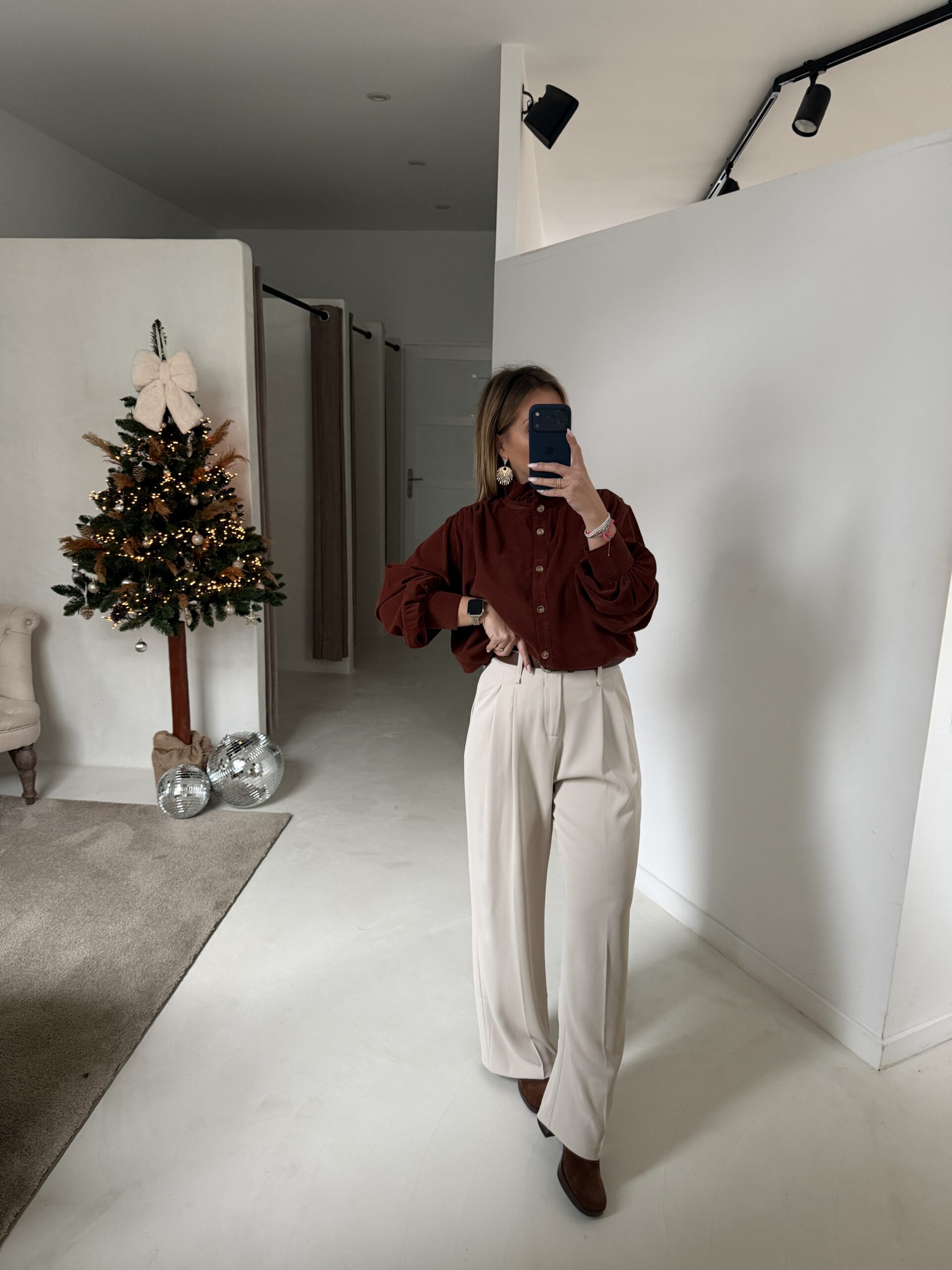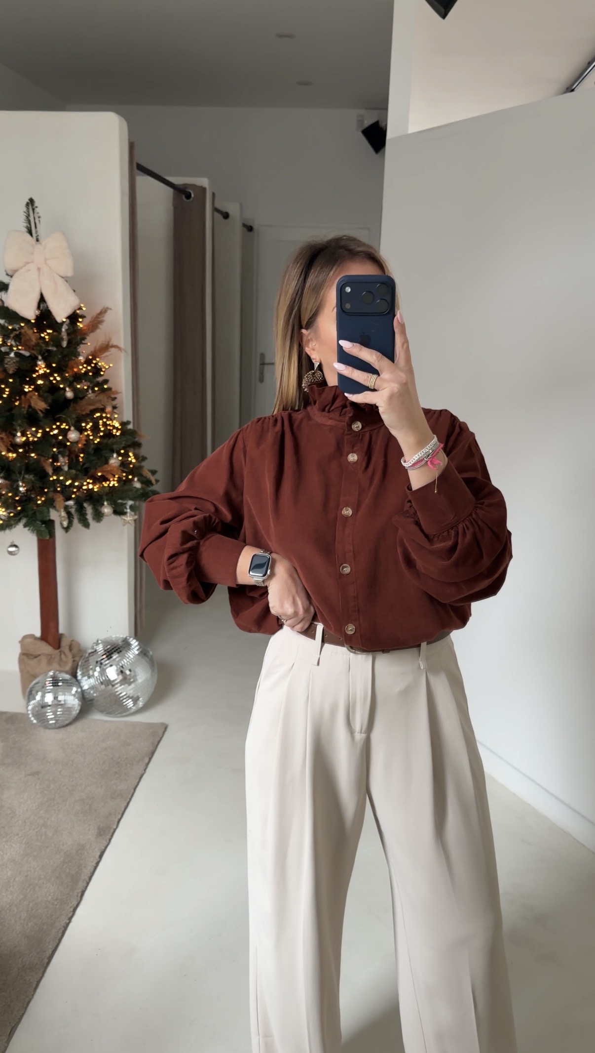 Blouse en velours terracotta col volanté