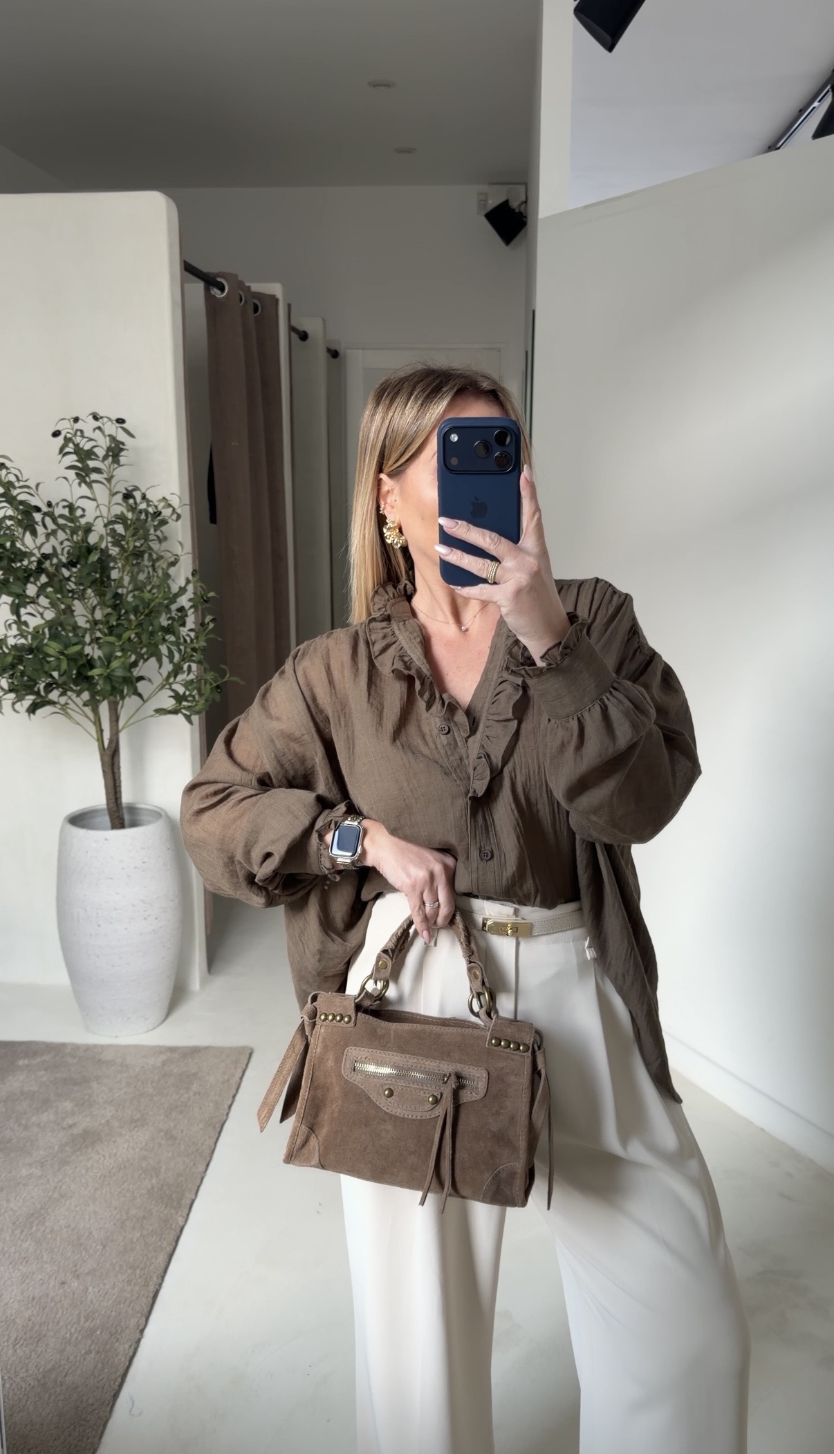 Cette blouse kaki  fluide et légère est un essentiel du dressing féminin, alliant confort et élégance