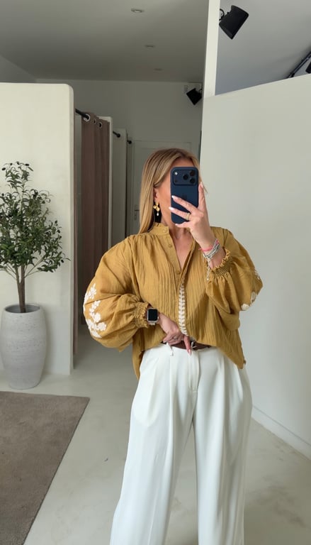 Blouse légère moutarde avec broderies