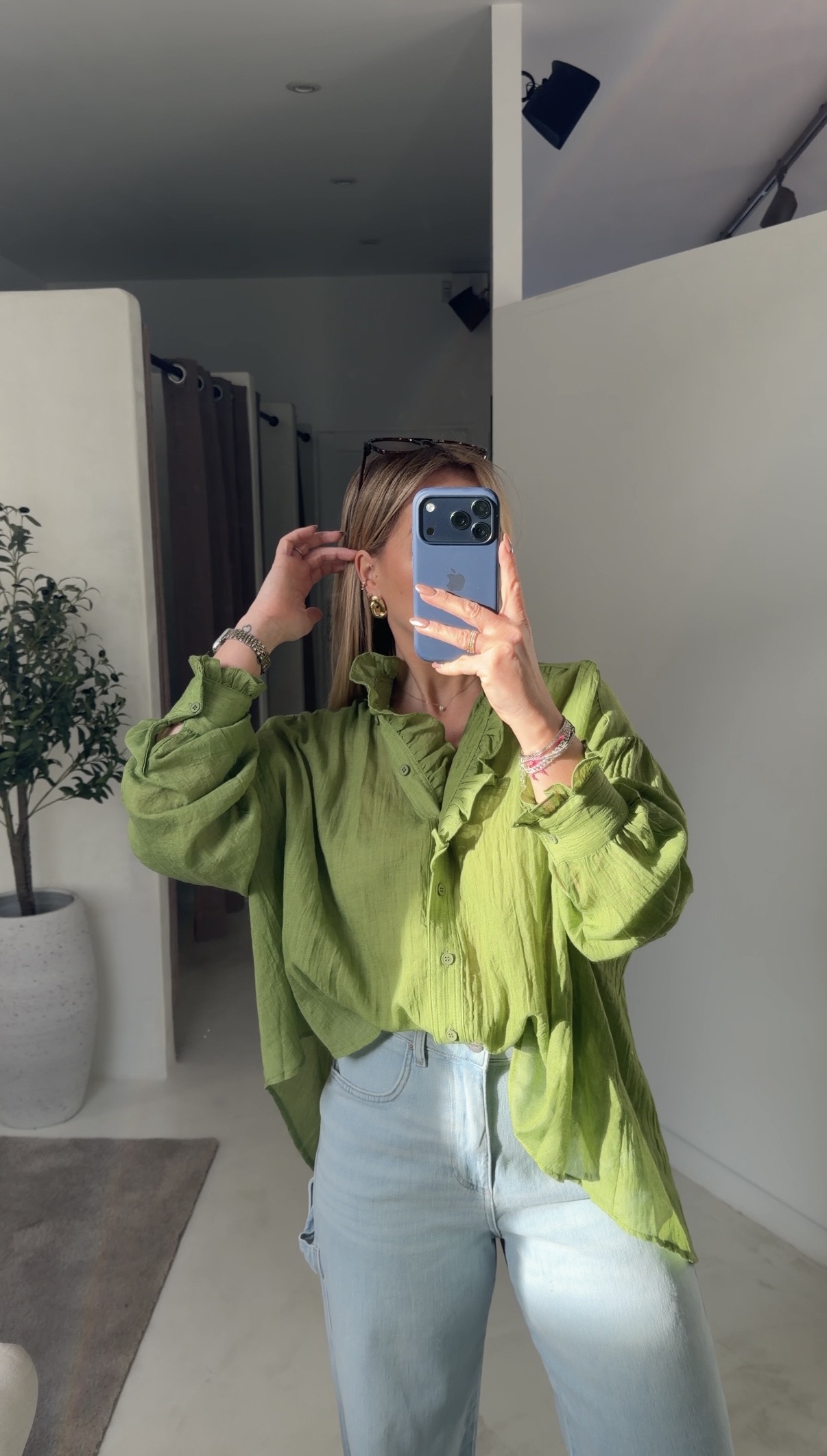 Blouse vert pomme fluide et ample