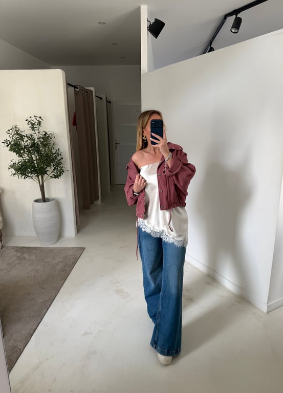 Le bustier effet soie asymétrique avec dentelle blanche dans le bas est un haut chic et féminin, idéal pour sublimer une tenue élégante. L’effet soie apporte de la fluidité tandis que la dentelle ajoute une touche romantique et raffinée.