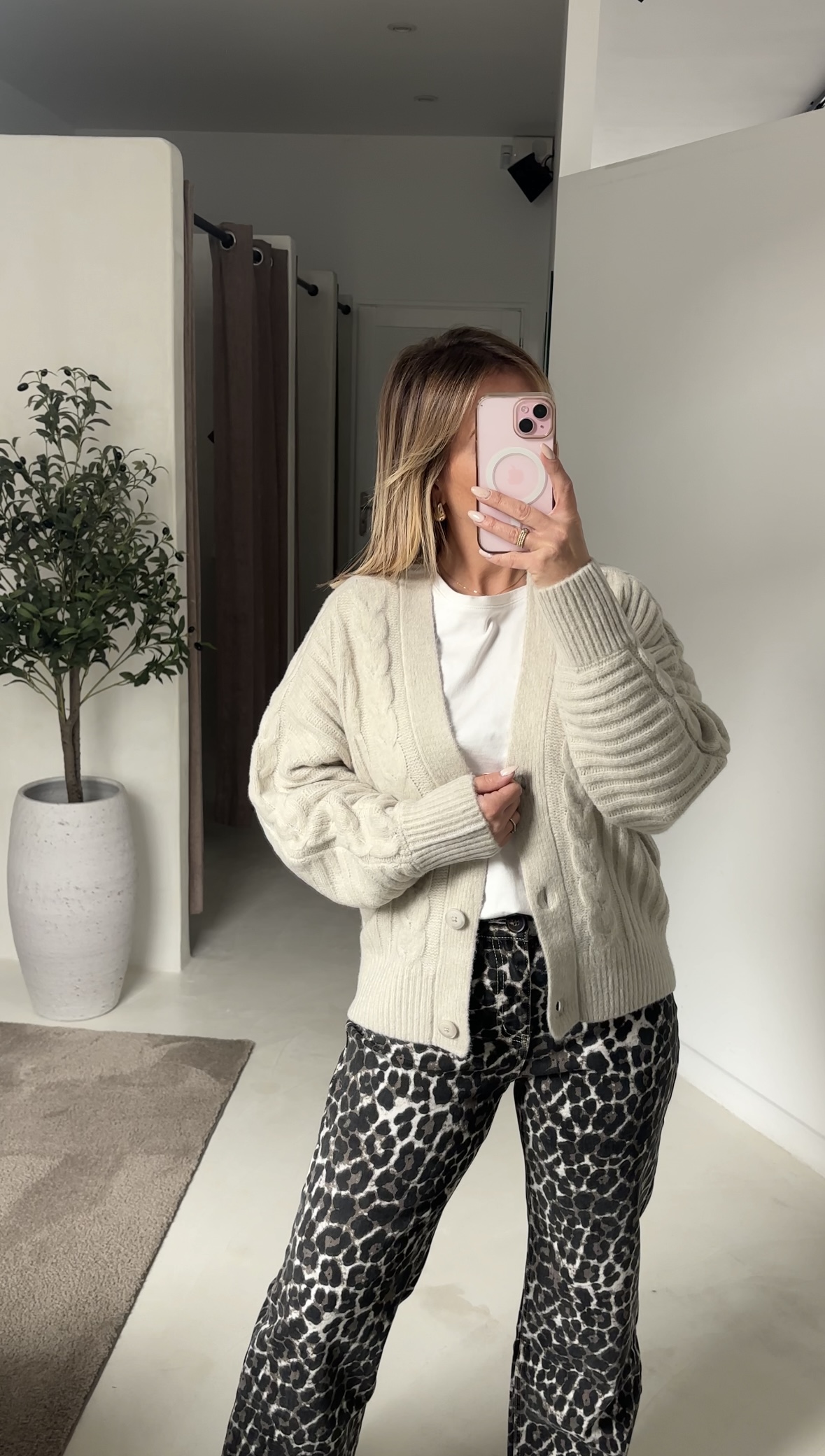Cardigan femme en laine douce, à la coupe décontractée et aux manches chauve-souris ultra confortables. Son col V profond met en valeur le décolleté avec élégance. Le devant en maille torsadée apporte une touche chic et intemporelle, tandis que le dos et les manches côtelés soulignent le côté moderne et tendance de cette pièce incontournable.