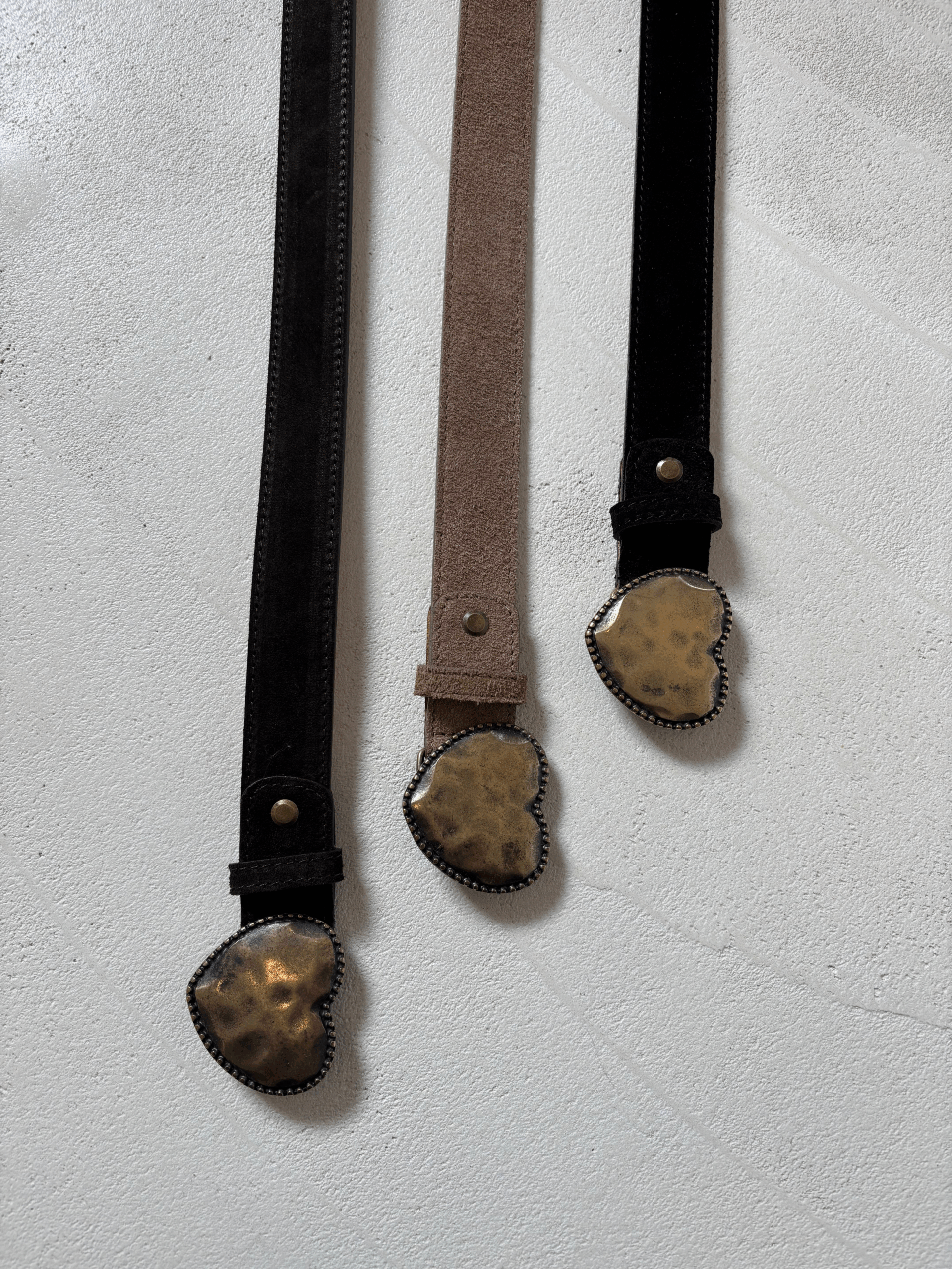 Ceinture en daim au charme doux et féminin ! Sa boucle en forme de cœur apporte une touche romantique et tendance à toutes vos tenues.