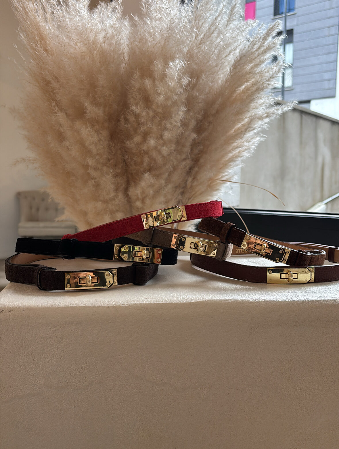 Apportez la touche finale parfaite à vos tenues avec cette ceinture en suédine élégante, sublimée par un fermoir doréchic et raffiné. Sa texture douce et son style intemporel en font un accessoire indispensable pour structurer vos silhouettes.