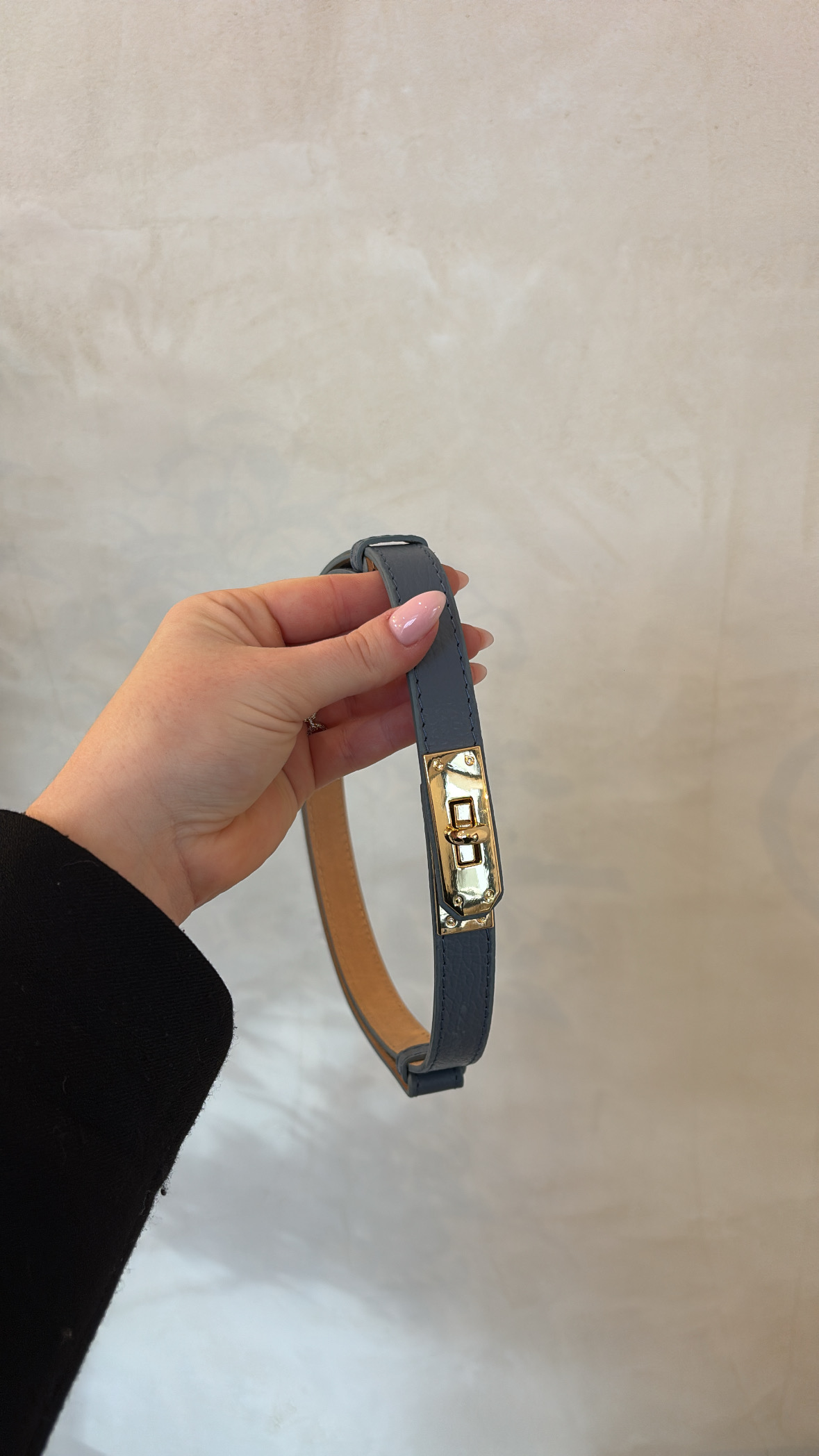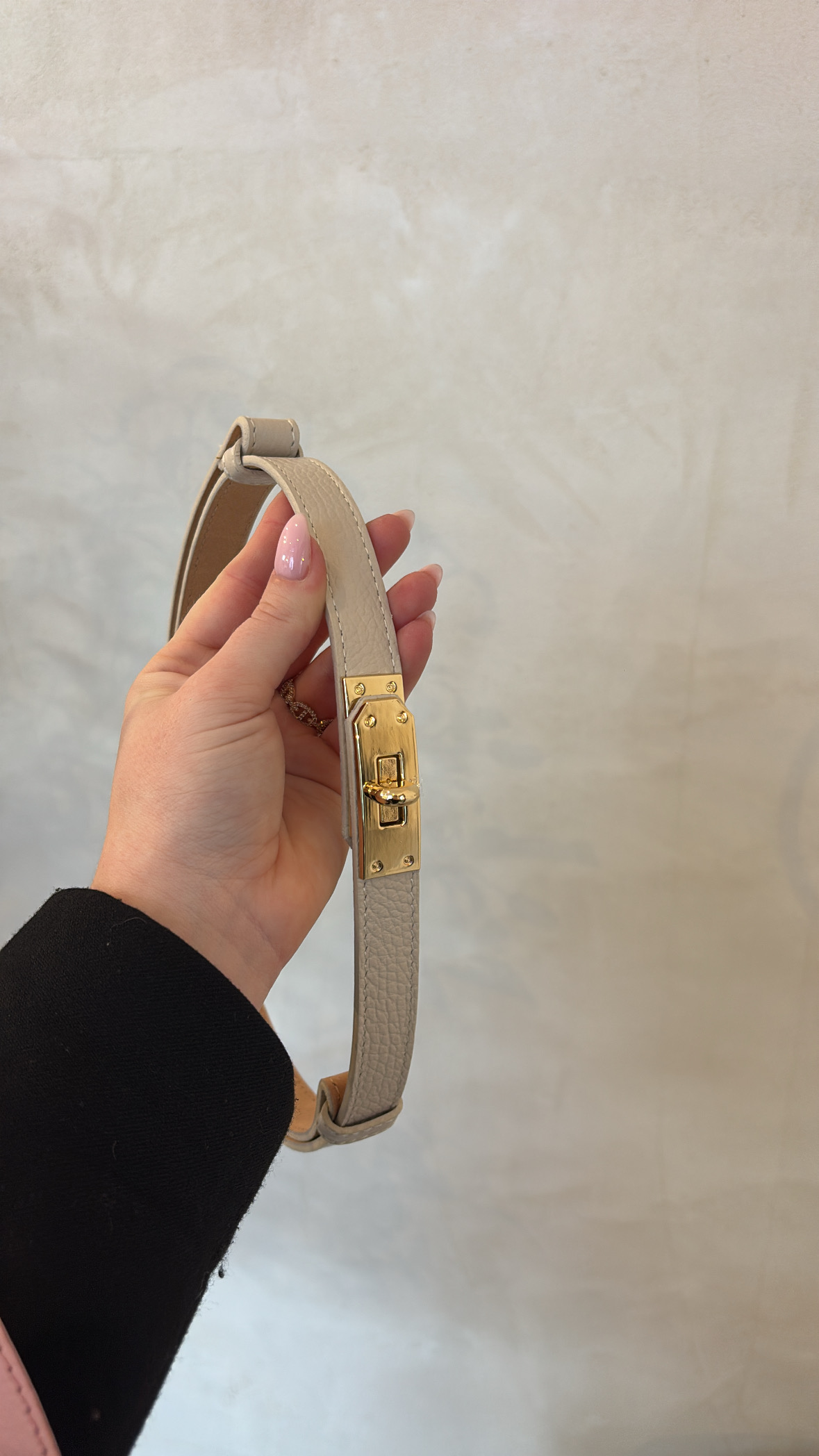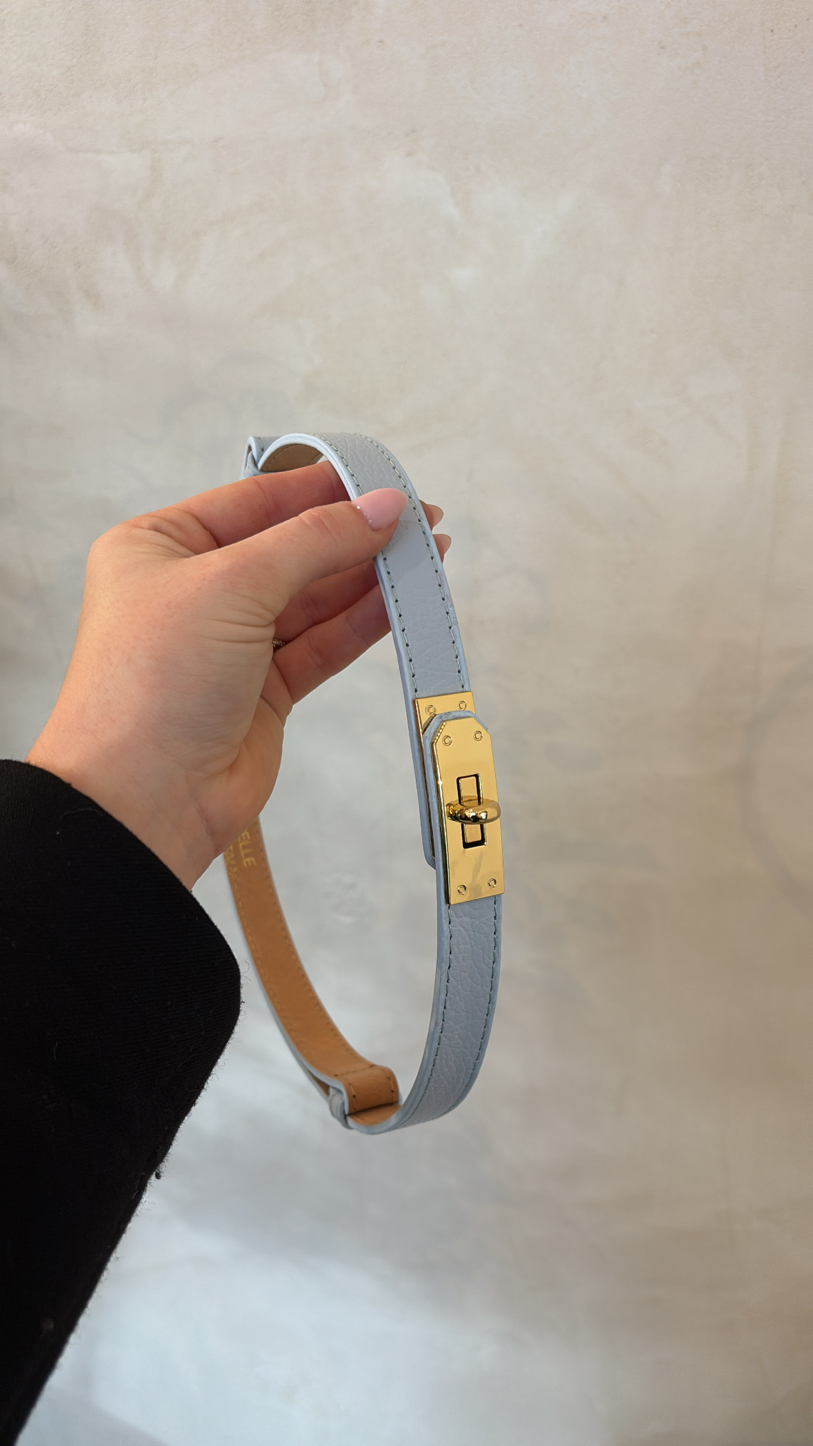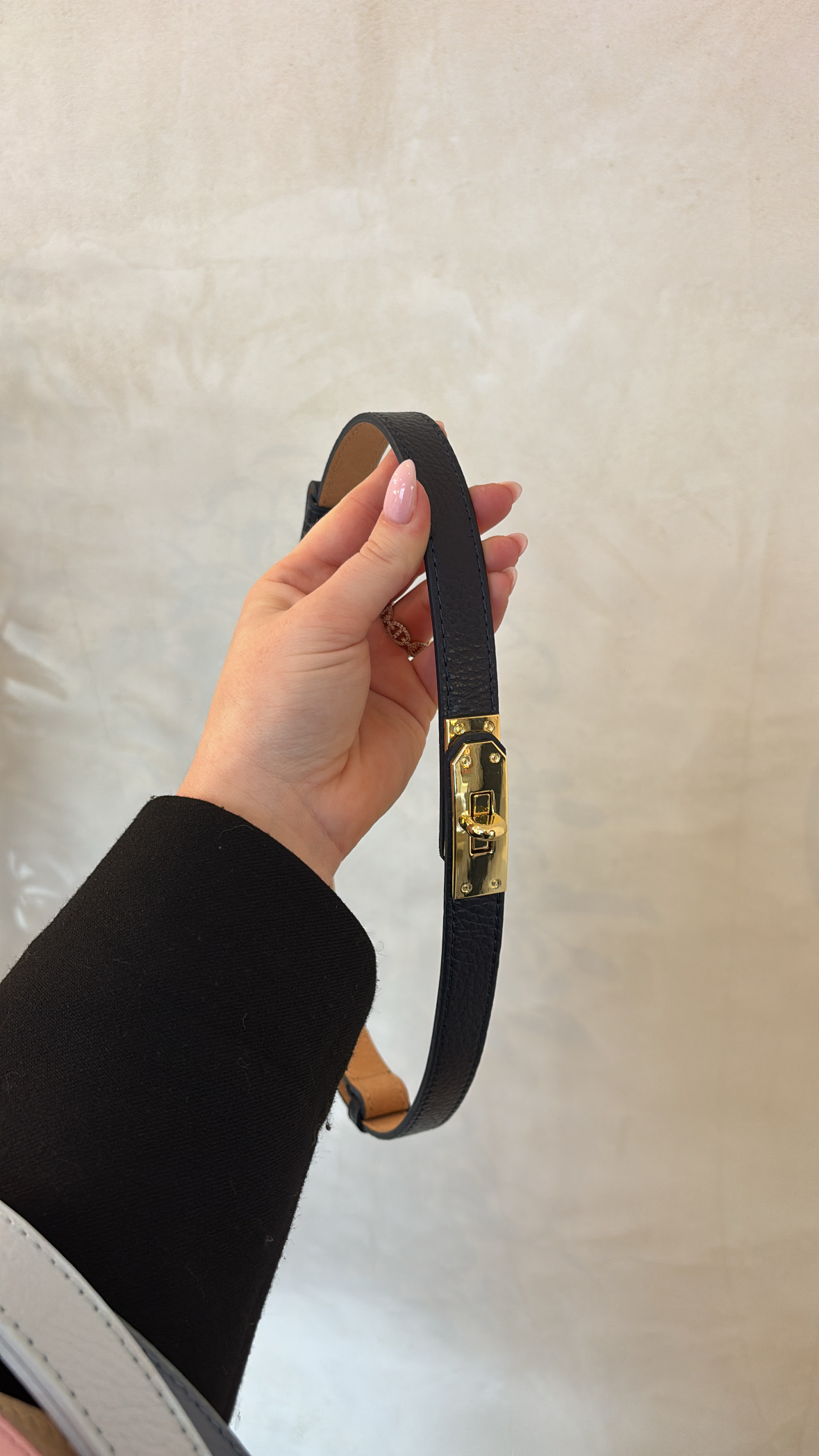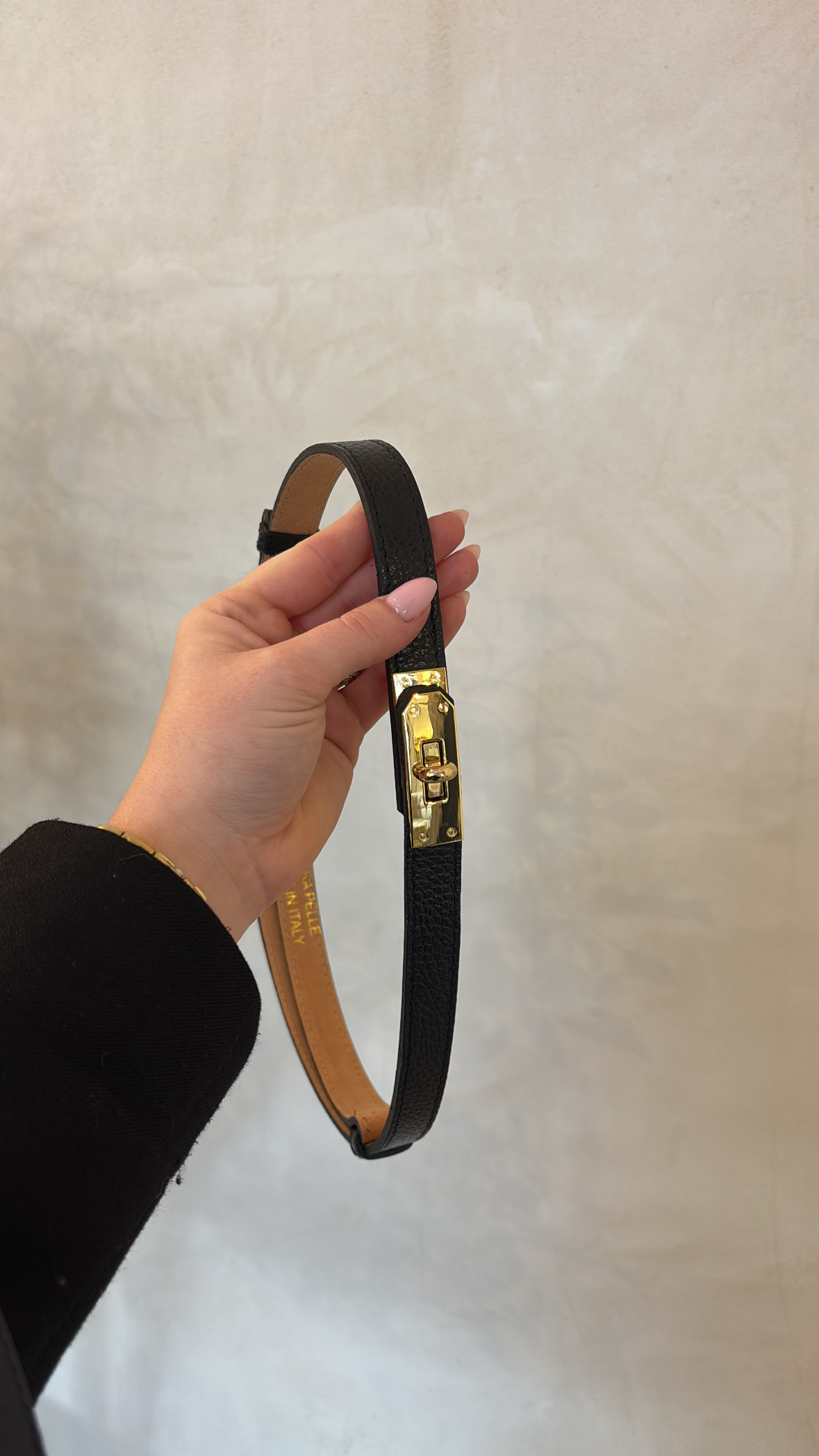 Apportez la touche finale parfaite à vos tenues avec cette ceinture en cuir élégante, sublimée par un fermoir doré chic et raffiné. Son style intemporel en fait un accessoire indispensable pour structurer vos silhouettes.
