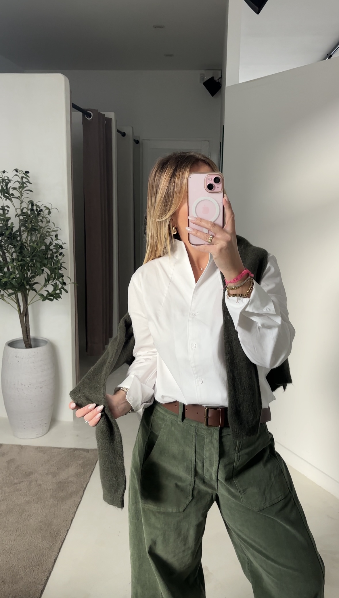 Ce chemisier raffiné est fabriqué à partir d’un mélange de coton structuré et présente un col en V haut pour un look moderne et féminin. Conçue avec une coupe ajustée et des poignets classiques, c’est une pièce intemporelle qui s’adapte aussi bien aux looks décontractés qu’aux tenues habillées.