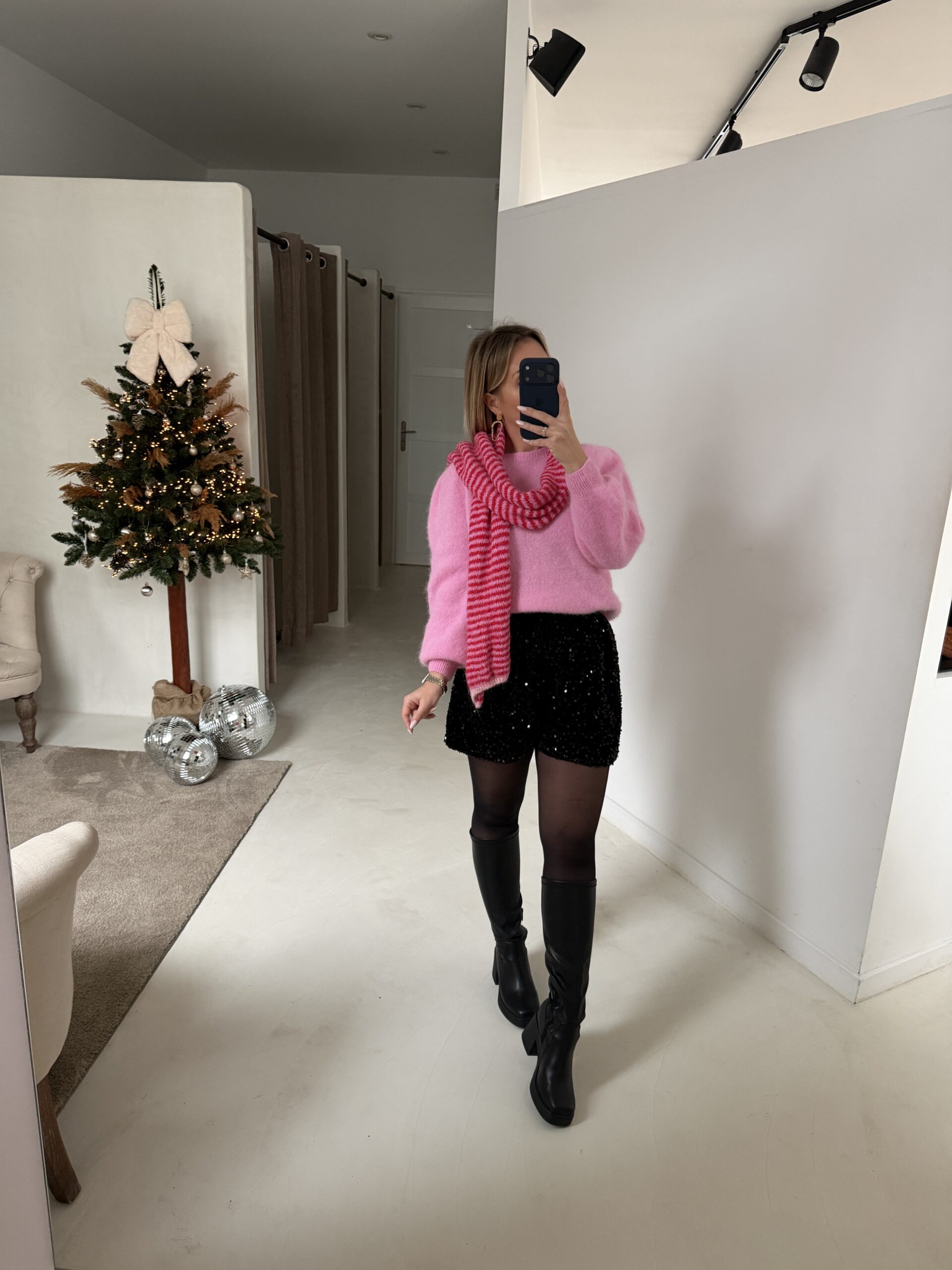Apportez une touche vibrante et féminine à vos tenues avec notre écharpe rayée rose et rouge, un accessoire à la fois chaleureux et plein de caractère. Ses rayures contrastées créent un effet visuel moderne et dynamique, parfait pour illuminer vos looks d’hiver.