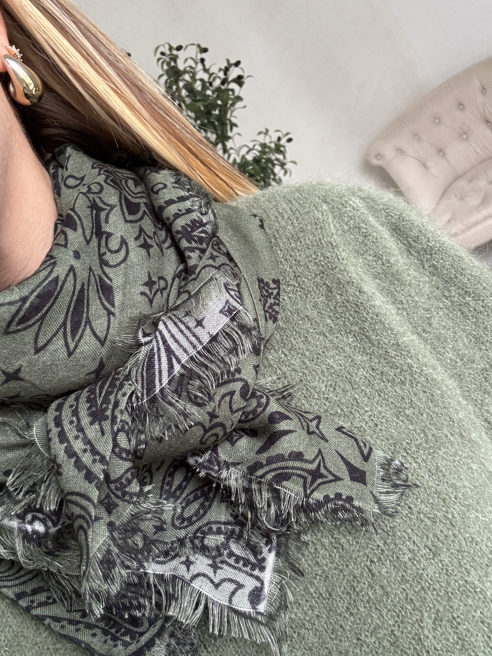 Craquez pour ce foulard kaki foncé aux motifs bandana, parfait pour apporter une touche de style à toutes vos tenues.