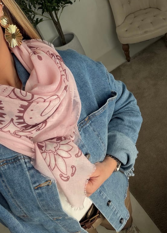 Ajoutez une touche tendance à vos looks avec ce foulard à motifs bandana rose. Léger et facile à porter, il sublime aussi bien un t-shirt, un pull, une robe ou un gilet. Noué autour du cou, dans les cheveux ou sur un sac, cet accessoire féminin apporte une note colorée et moderne à toutes vos tenues. Indispensable pour compléter un style casual ou chic avec élégance.