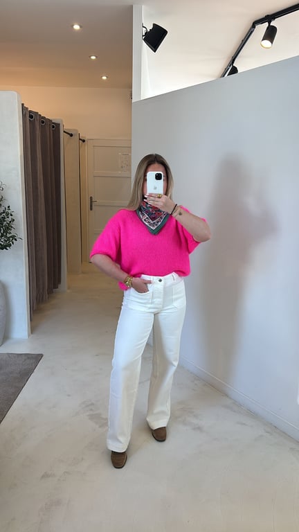 Ce jean taille haute blanc est un incontournable pour un look moderne et féminin. Sa coupe flatteuse met en valeur la silhouette tout en assurant un confort optimal grâce à sa matière légèrement extensible.