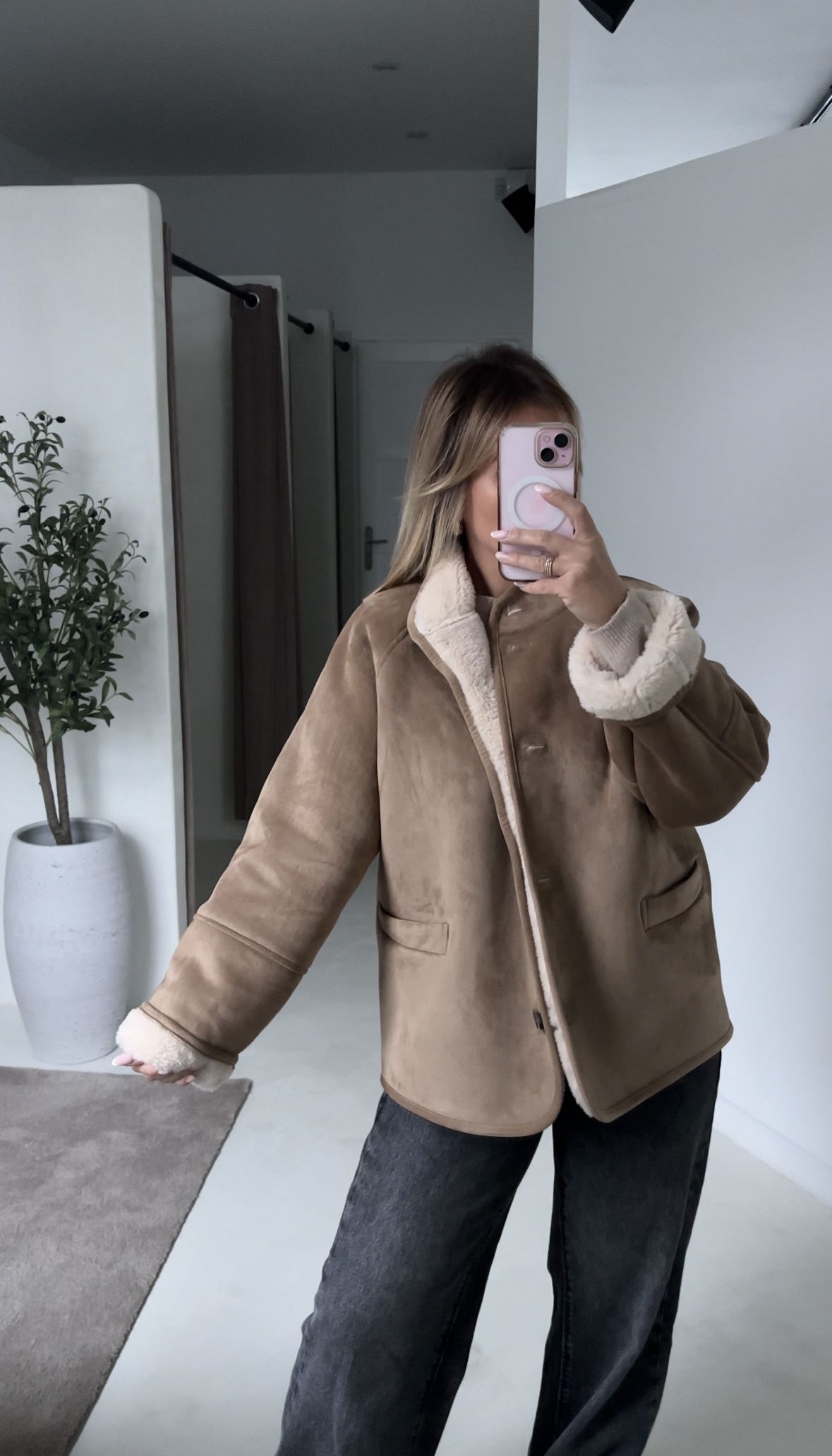 Manteau oversize en mouton retourné