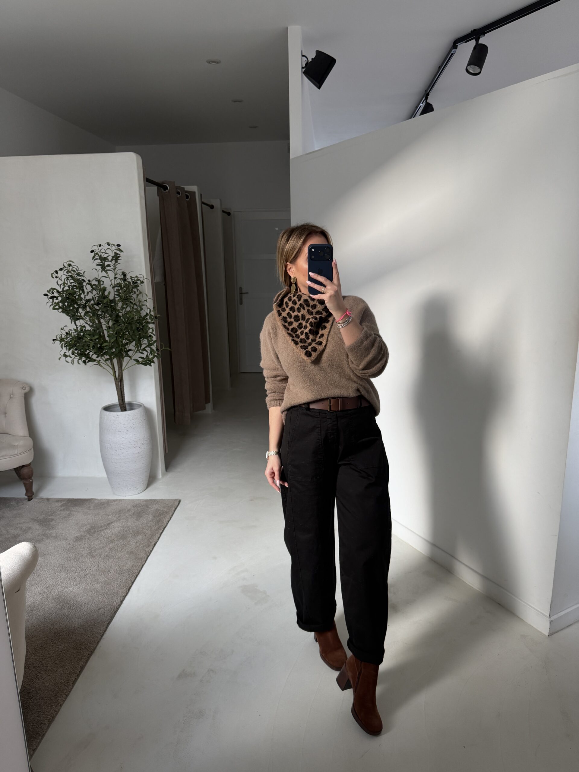 Pantalon ballon noir ceinturé, confortable et stylé, parfait pour un look décontracté mais chic.