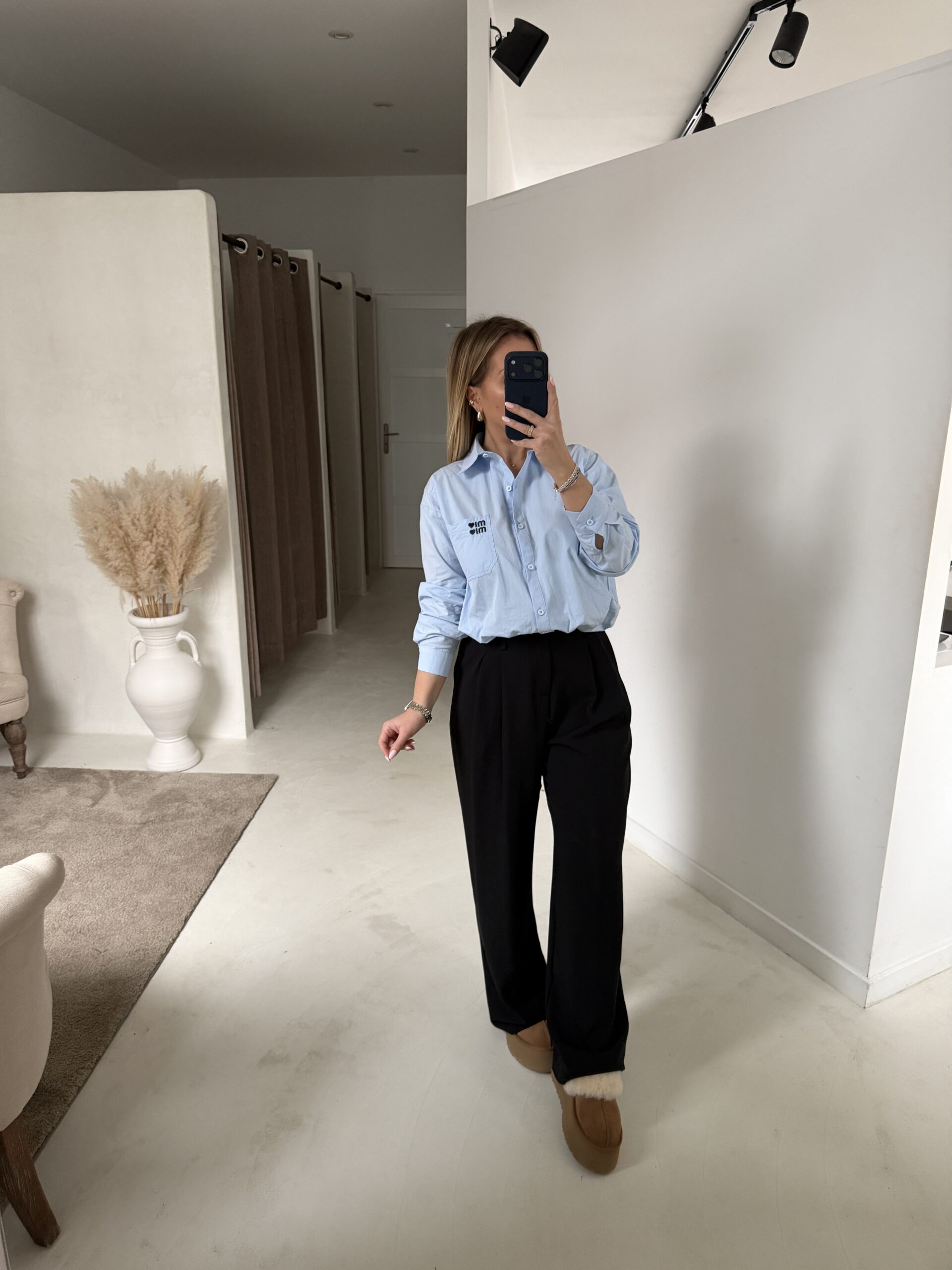 Ce pantalon fluide et large bleu marine est un indispensable pour un look élégant et confortable 🖤