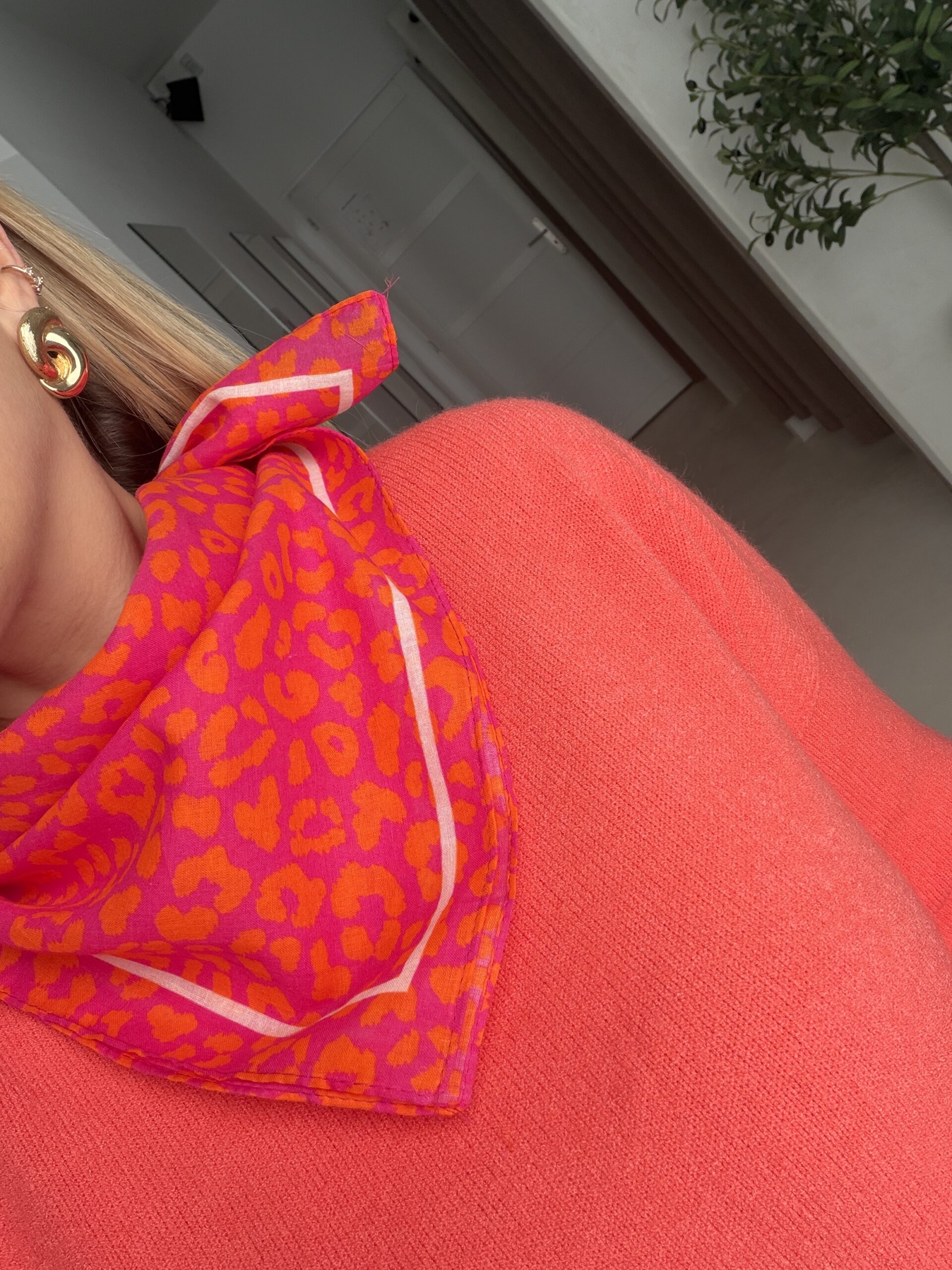 Petit foulard orange et rose léopard