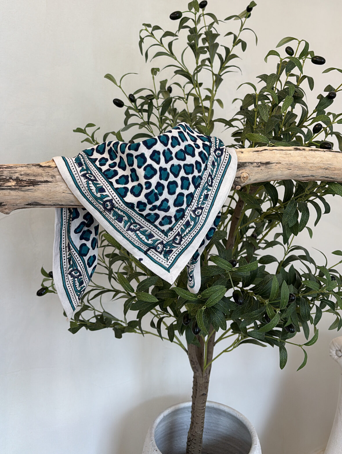 Un imprimé léopard revisité en nuances de bleu profond, inspiré du célèbre parc de Ranthambore en Inde, territoire des fauves.