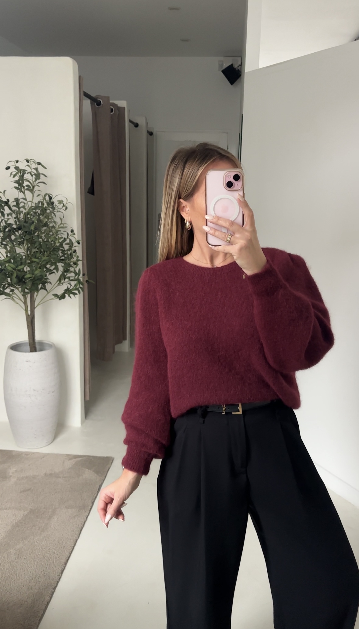 Ce pull bordeaux avec épaulettes apporte une touche moderne et structurée à votre garde-robe. Les épaulettes ajoutent du caractère à cette pièce, tout en restant élégantes et minimalistes. Confortable et stylé, il s’adapte parfaitement à un look casual chic ou plus habillé, selon vos envies.