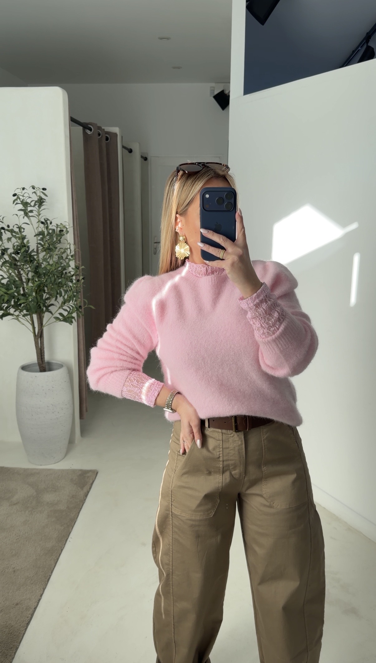 Pull à épaulettes rose pâle