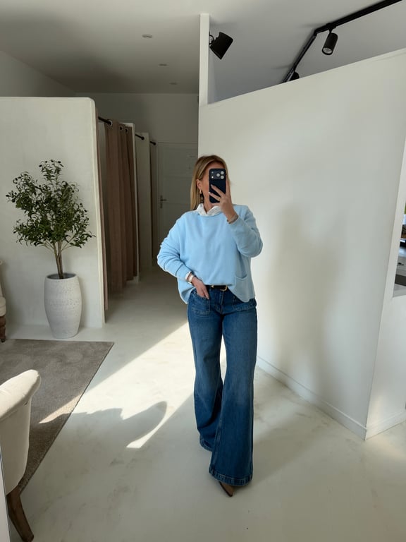 Craquez pour ce pull bleu ciel taille unique, une pièce douce et confortable idéale pour un look casual et tendance. Ses poches sur le devant apportent une touche pratique et moderne. Ce pull femme se porte facilement avec un jean, un pantalon ou une jupe pour une tenue facile au quotidien, à associer avec tous vos hauts, bas et accessoires.