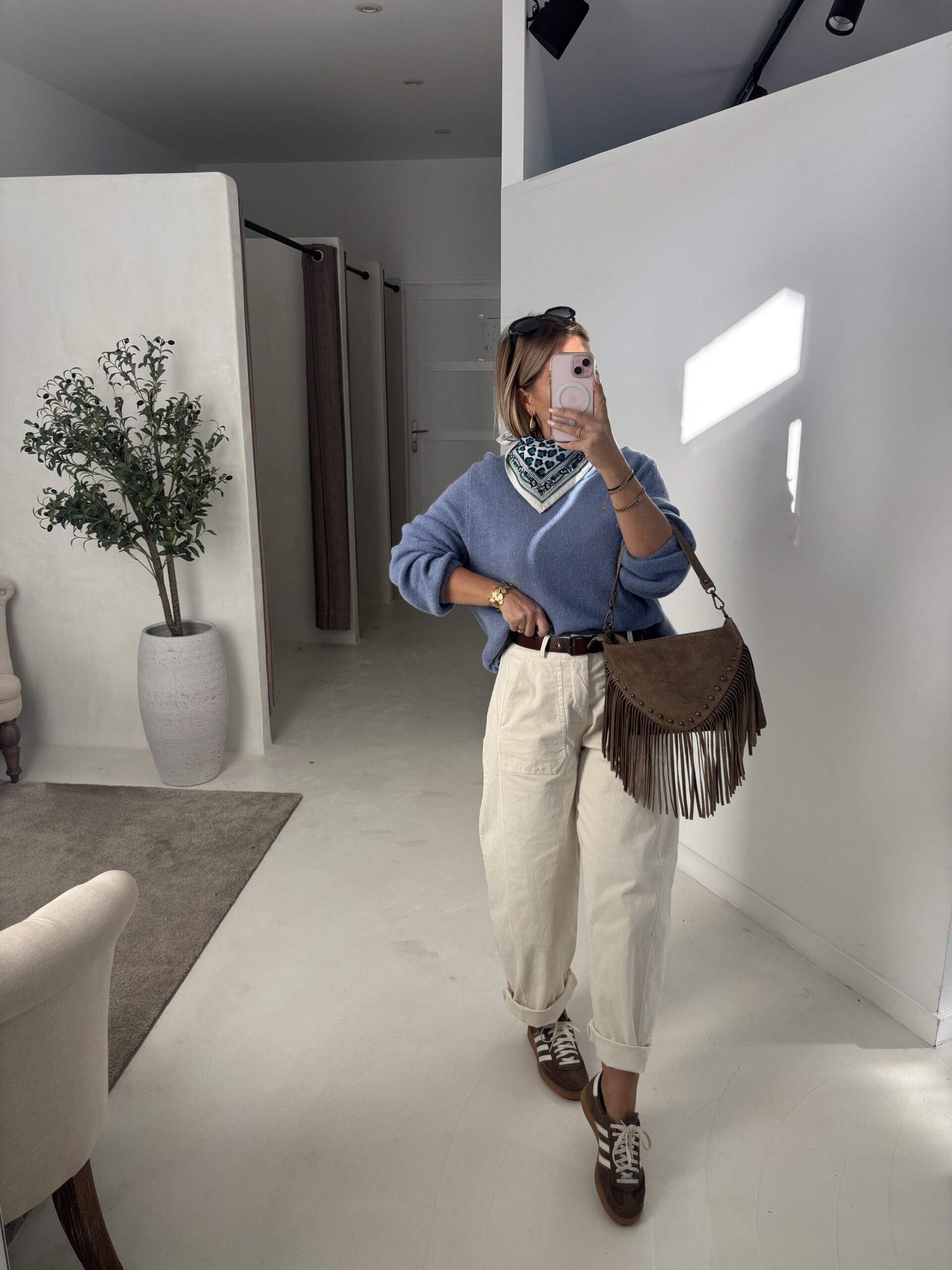 Misez sur l’élégance discrète avec ce pull bleu col rond, sublimé par de délicates coutures apparentes au niveau du col qui apportent une touche d’originalité. Sa maille douce et confortable en fait une pièce idéale pour le quotidien, facile à associer avec vos basiques du dressing.