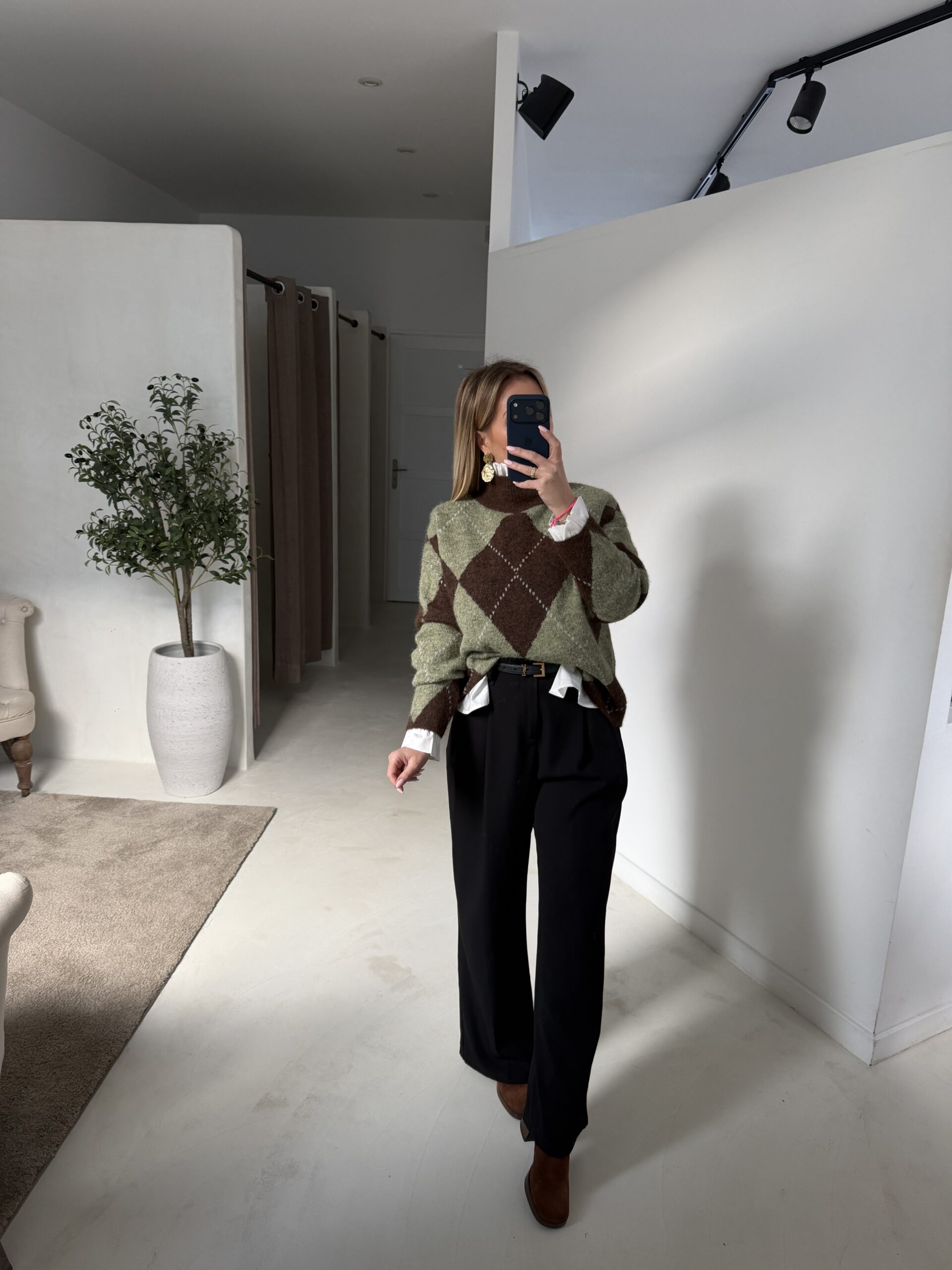 Ce pull col montant à carreaux vert et marron est la pièce idéale pour allier confort et style. Son col montant tient bien chaud tout en apportant une touche chic à vos tenues, et son motif à carreaux vert et marron donne du caractère et de la modernité à votre look.