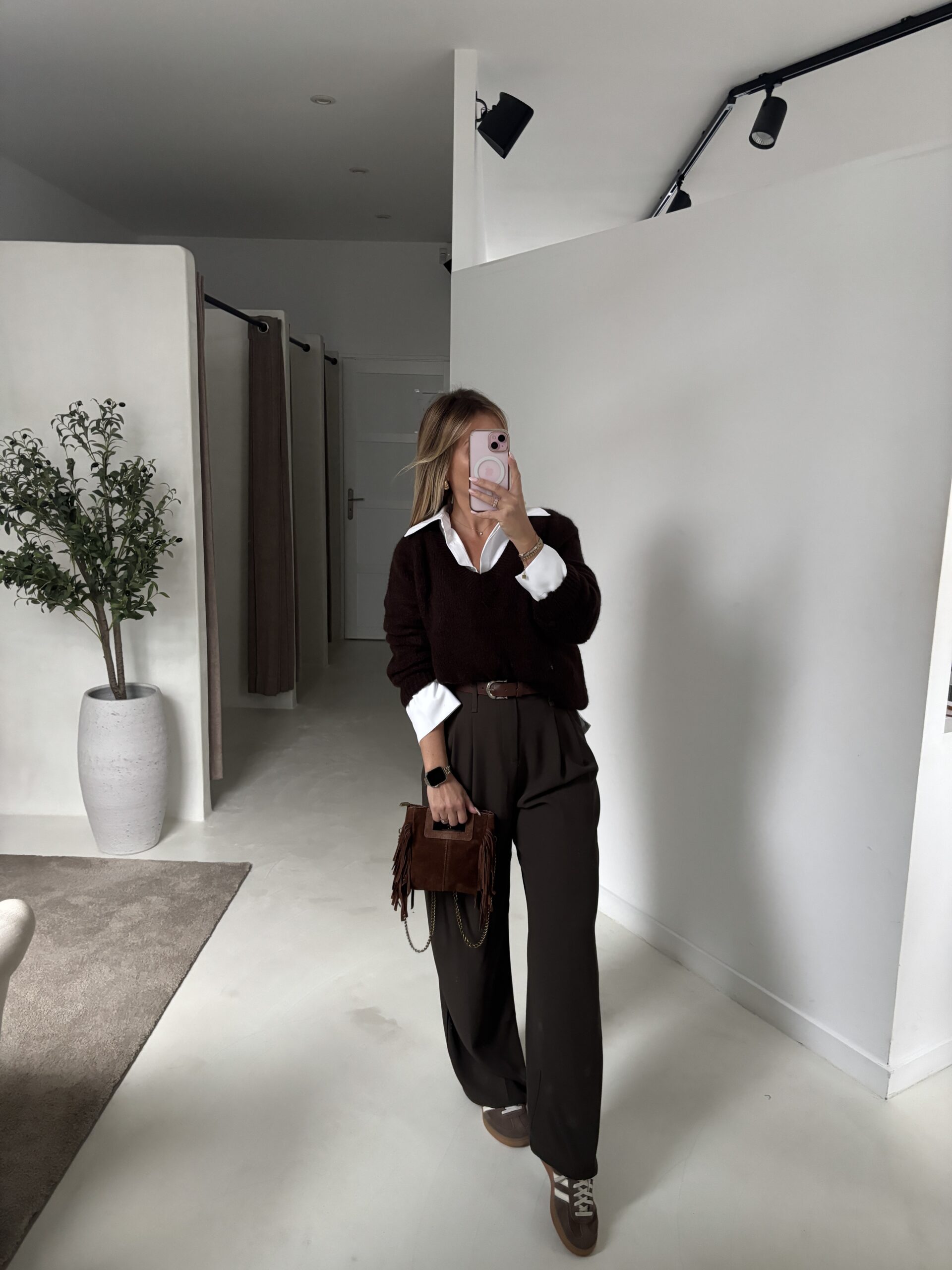 Ce pull col V avec son délicat détail côtelé apporte une touche de douceur et d’élégance à vos tenues. Confortable et raffiné, il est parfait pour les journées fraîches tout en offrant une silhouette féminine et élégante. Un indispensable à porter aussi bien au bureau qu’en week-end.