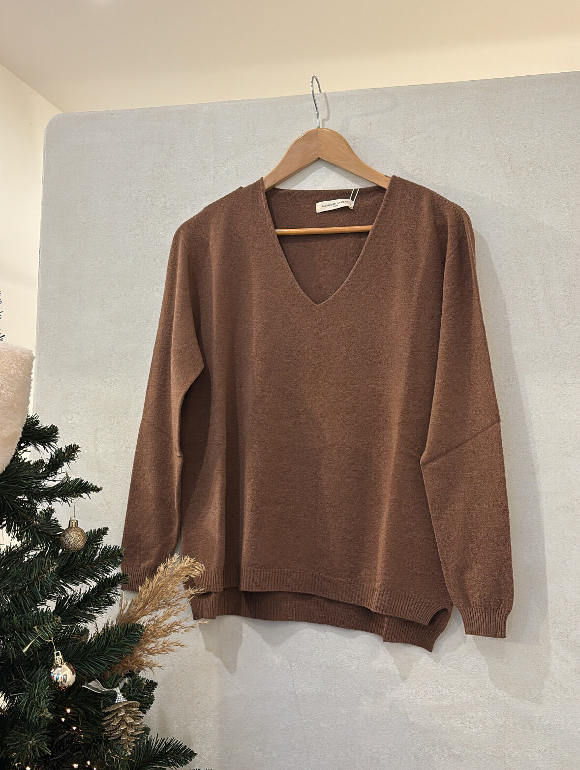 Un pull tout doux au toucher cachemire, idéal pour un look confortable et élégant. Sa coupe droite et son col V en font une pièce facile à porter au quotidien. Il peut se porter avec un jean, une jupe ou un pantalon fluide pour un style chic et décontracté.