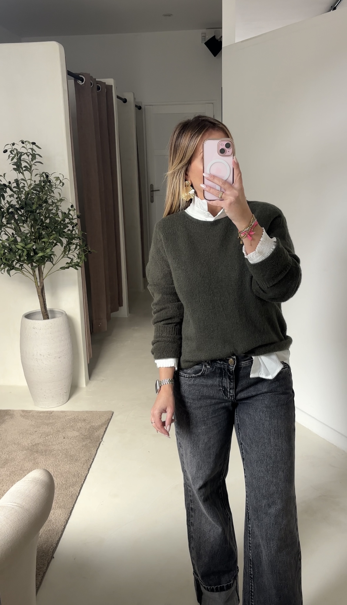 Ce pull kaki est un incontournable qui s’adapte à tous les styles. Son col rond classique et sa couleur neutre le rendent facile à associer avec un jean ou un pantalon plus habillé. Confortable et intemporel, il est parfait pour le quotidien.