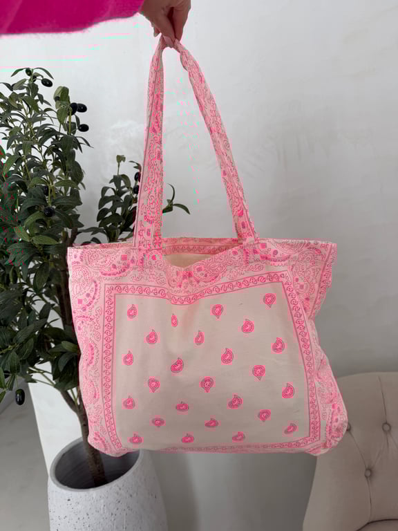 Adoptez ce sac en tissu écru et rose fluo à motifs bandana, un accessoire audacieux pour dynamiser vos tenues. Léger et pratique, il se porte à la main ou sur l’épaule pour un style casual chic. Parfait avec un jean, une robe ou un pantalon, il apporte une touche tendance et féminine à tous vos looks. Un indispensable pour allier praticité et couleur avec style.