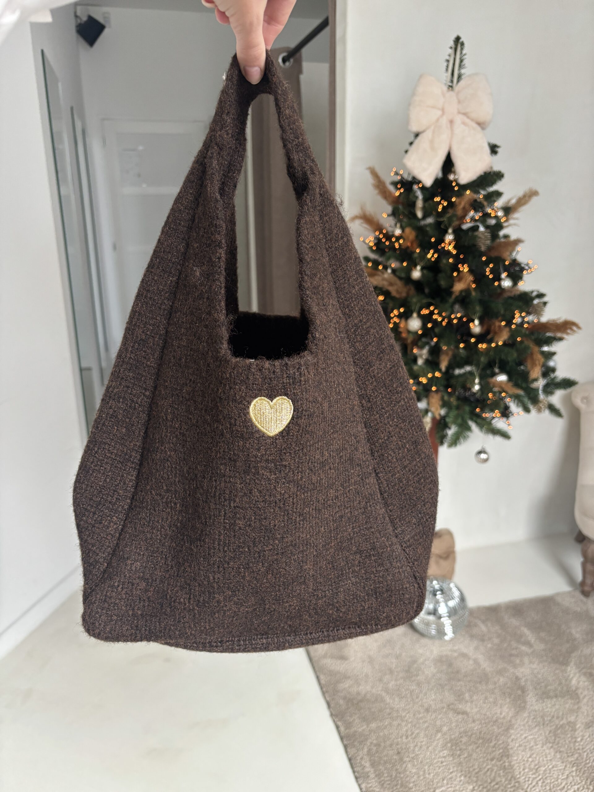 Sac en tissu marron avec coeur doré