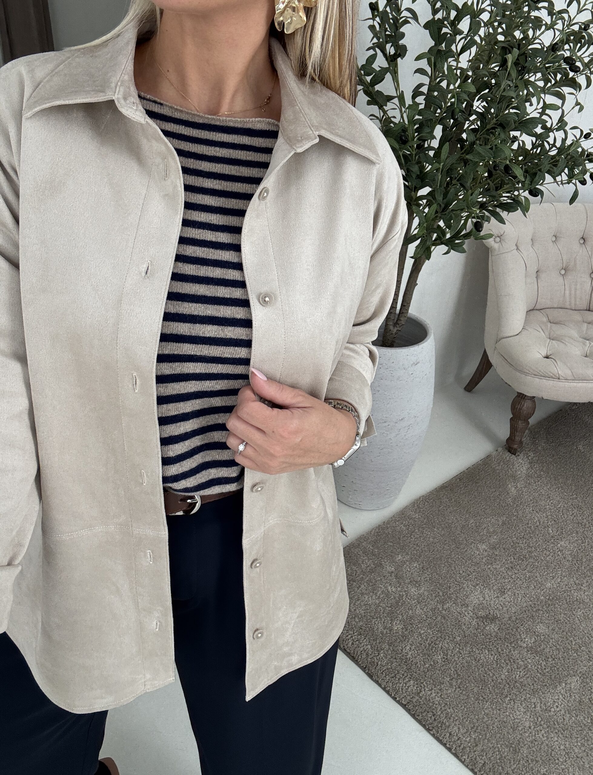 Surchemise en suédine beige clair avec ceinture fine