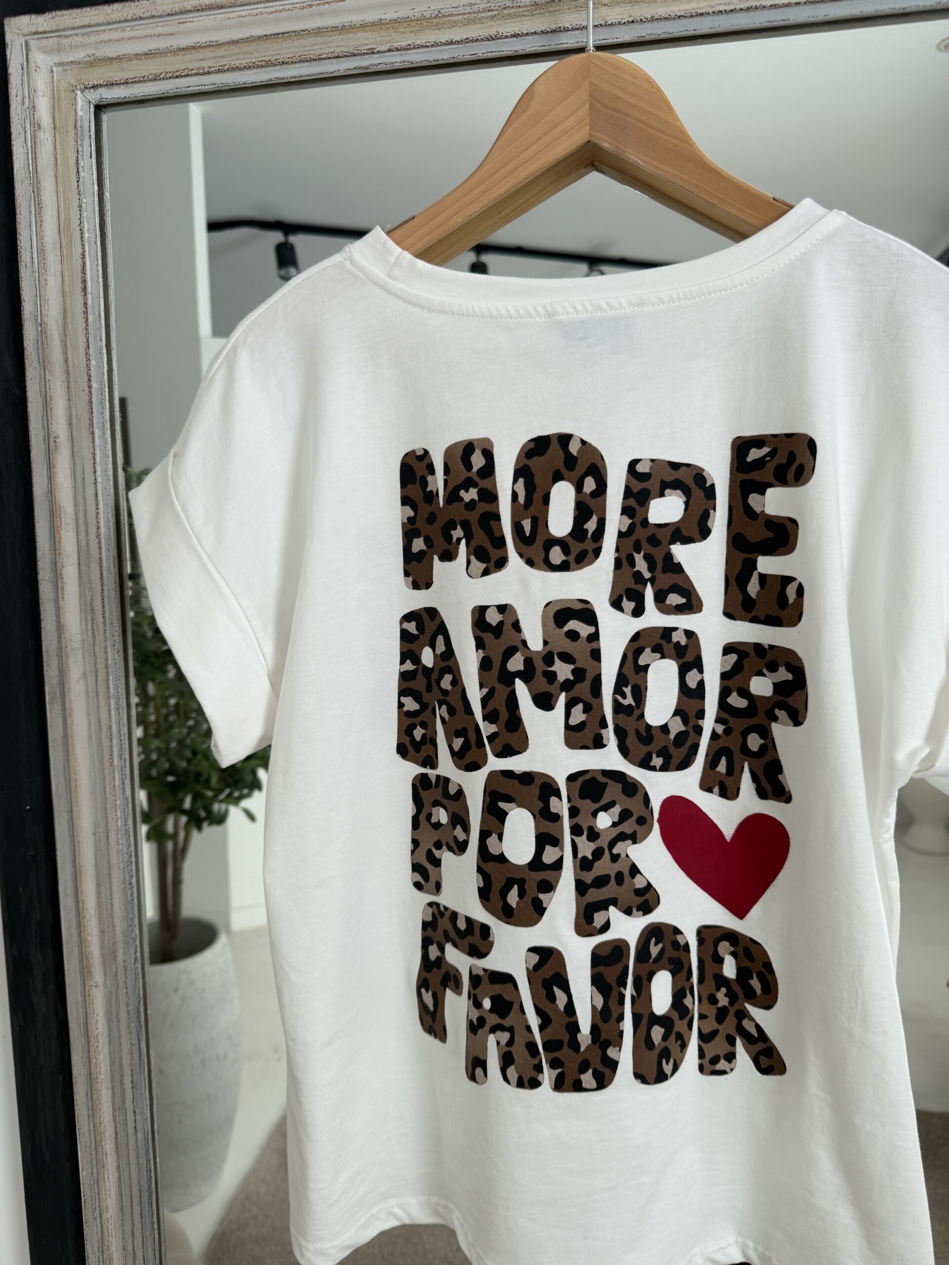 T-shirt blanc more amore por favor léopard