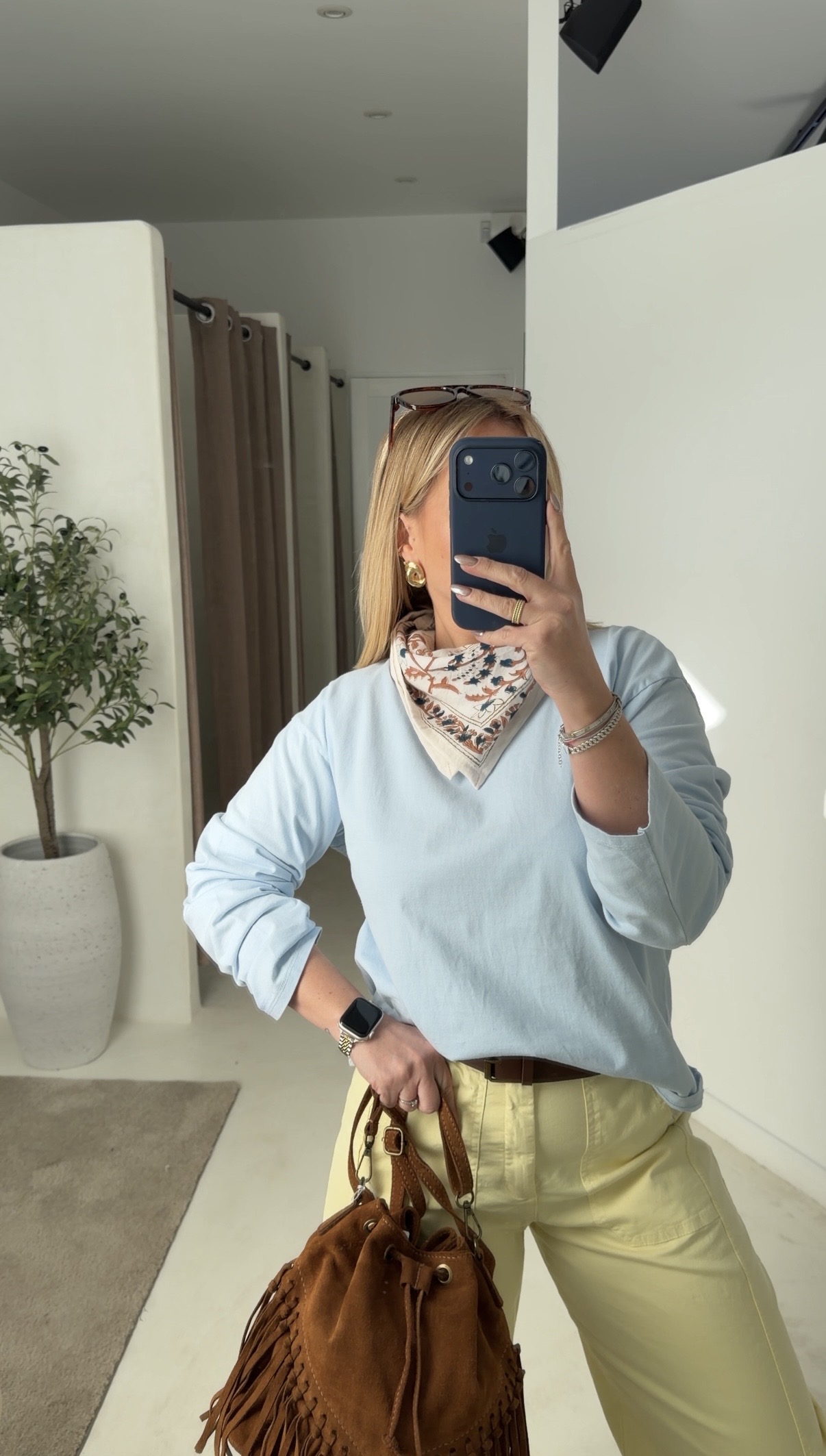 Ce t-shirt manches longues bleu ciel oversize est un essentiel du dressing pour un look décontracté et tendance. Avec sa coupe ample et confortable, ce t-shirt femme se porte facilement avec un jean, un pantalon ou un short. Un haut basique facile à associer, parfait pour créer des tenues casual tout en restant stylée.
