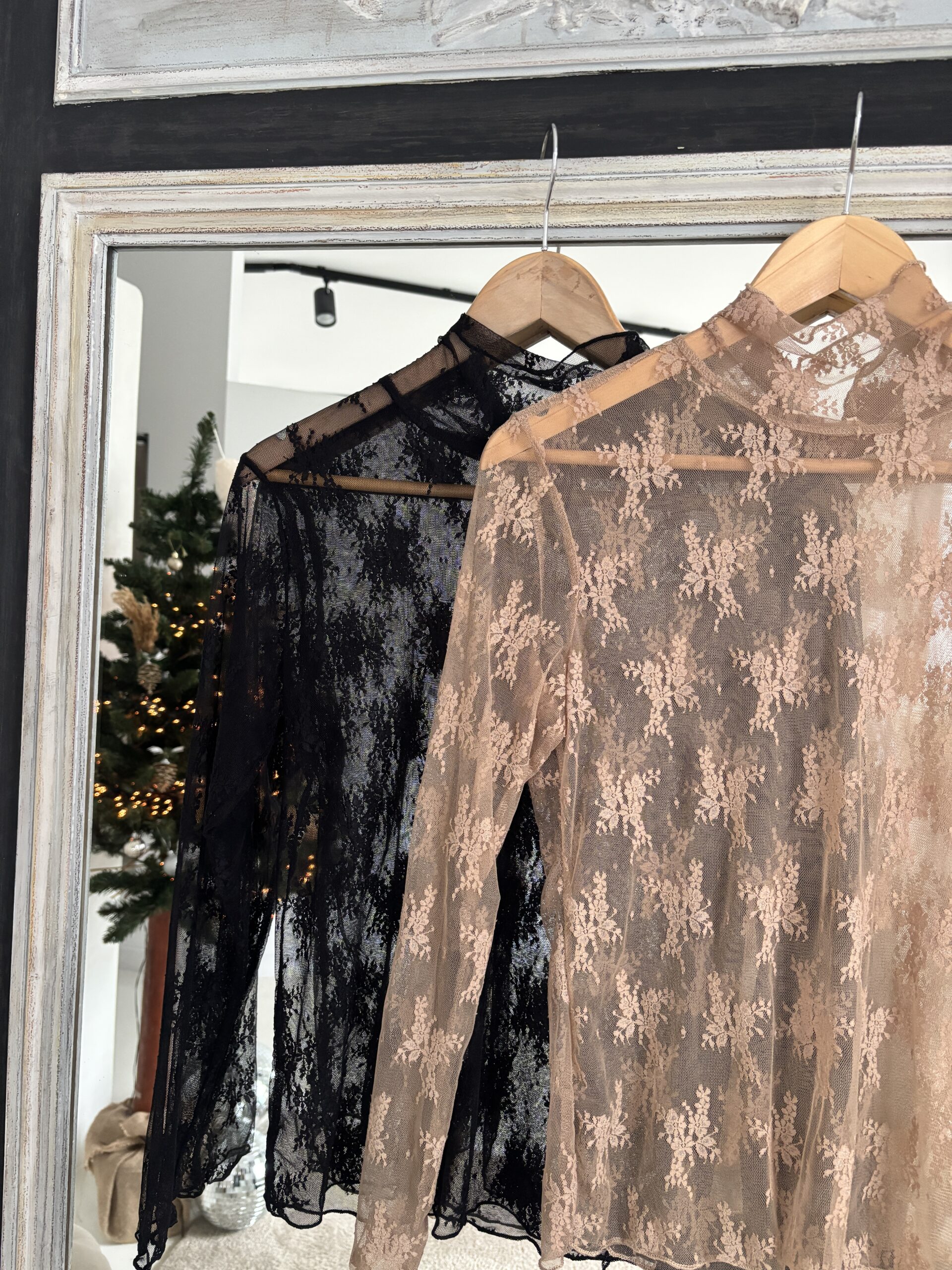 Ce top en dentelle noir séduit par son col montant et son jeu de transparence qui apporte une allure à la fois raffinée et ultra-féminine. Sa dentelle délicate sublime la silhouette et en fait un haut idéal pour créer des looks élégants, que ce soit avec un jean, un pantalon habillé, une jupe ou même sous un gilet pour un style plus sophistiqué.