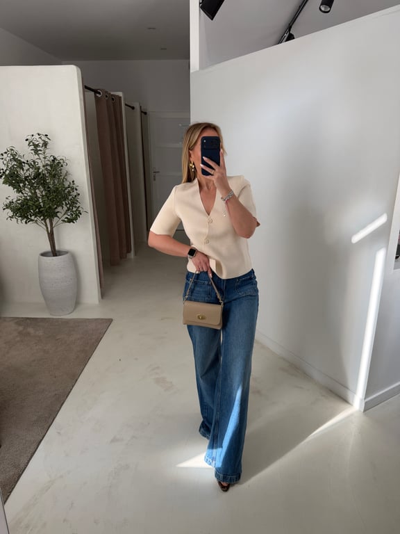 Top beige en maille avec boutonnage asymétrique : le haut féminin et élégant qui apporte une touche moderne à votre dressing. Ce top femme séduit par sa maille douce et confortable et son détail de boutonnage asymétrique qui structure la silhouette avec style. Facile à porter avec un jean, un pantalon ou une jupe, il s’associe parfaitement à vos gilets, pulls et accessoires pour un look casual chic, raffiné et tendance.