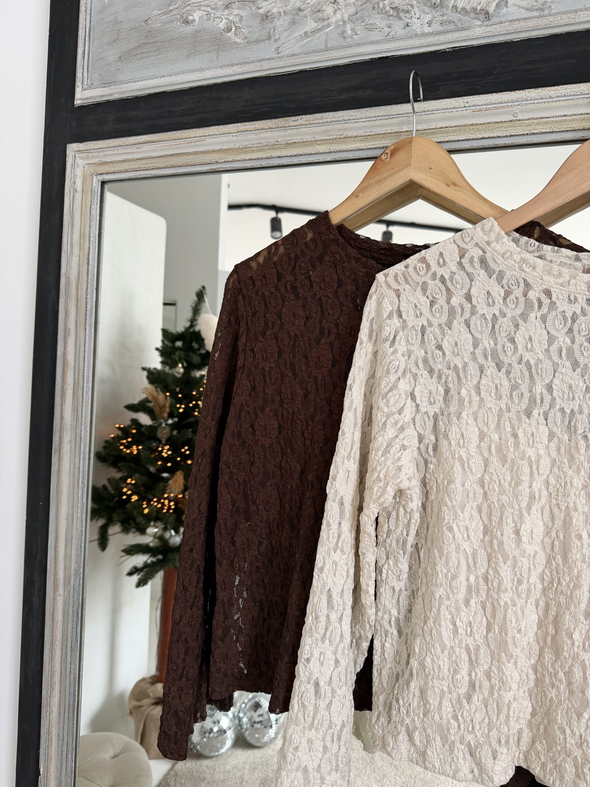 Sublimez vos tenues avec notre top manches longues en dentelle écru, une pièce délicate et raffinée qui joue subtilement avec la transparence. Sa dentelle travaillée apporte une touche romantique tout en offrant un rendu moderne et élégant.