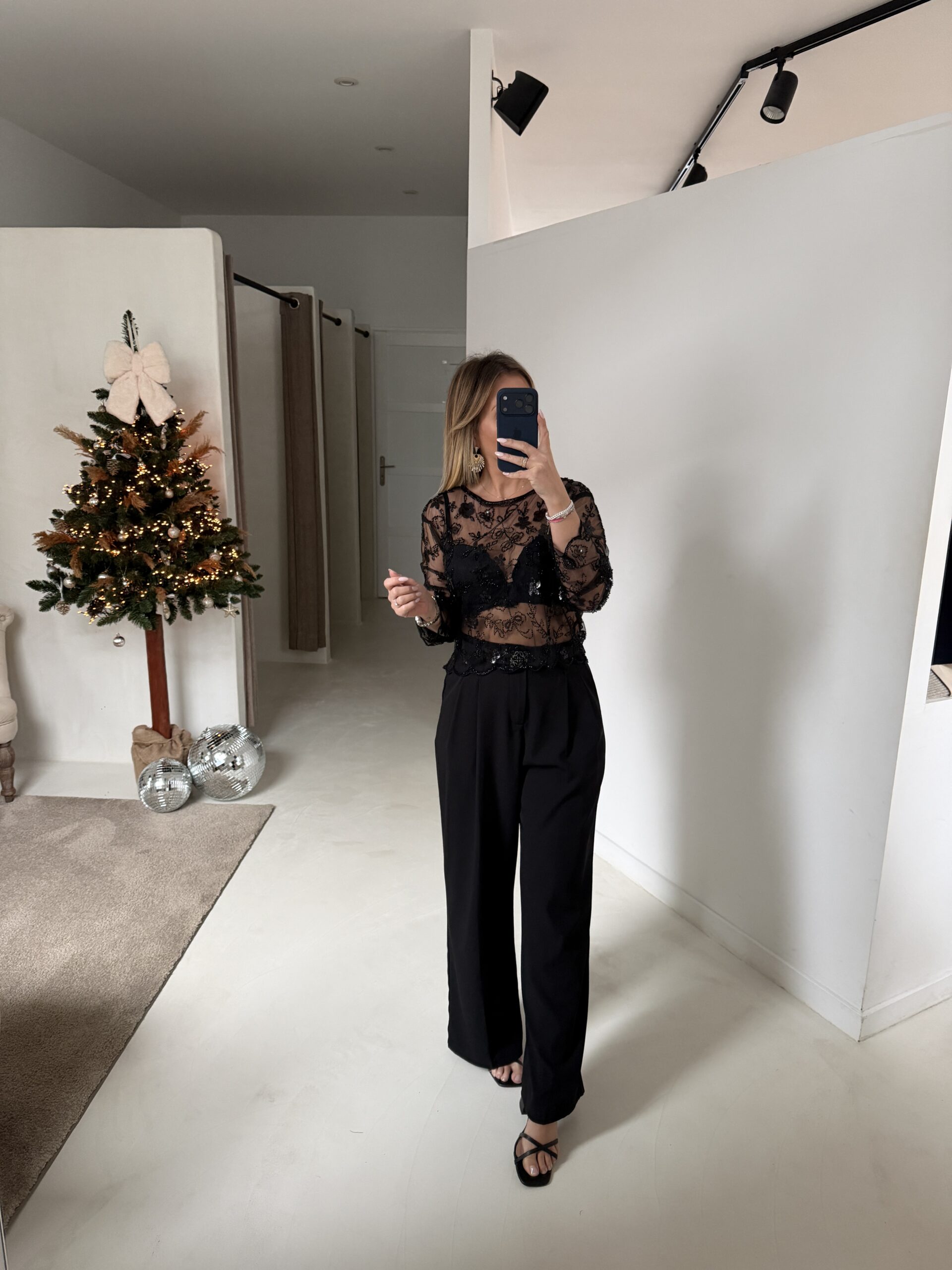 Osez la touche glamour avec notre top transparent noir, sublimé par de délicats motifs à paillettes qui accrochent la lumière avec élégance. Sa transparence subtile crée un jeu de contrastes très tendance, tandis que les paillettes ajoutent une note festive et sophistiquée.
