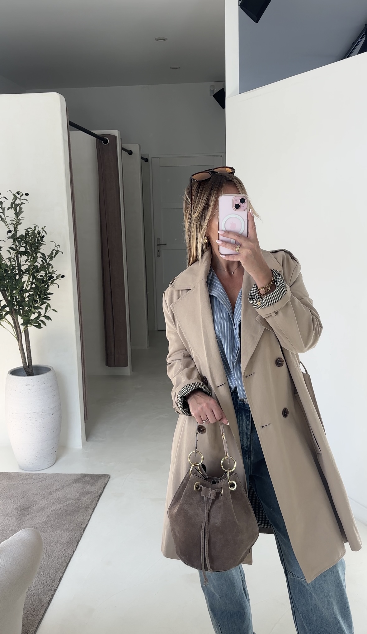Élégant et intemporel, ce trench beige mi-long se distingue par sa ceinture à nouer qui permet de cintrer la taille et sublimer la silhouette. Sa coupe classique et raffinée en fait une pièce incontournable pour un style chic et moderne.