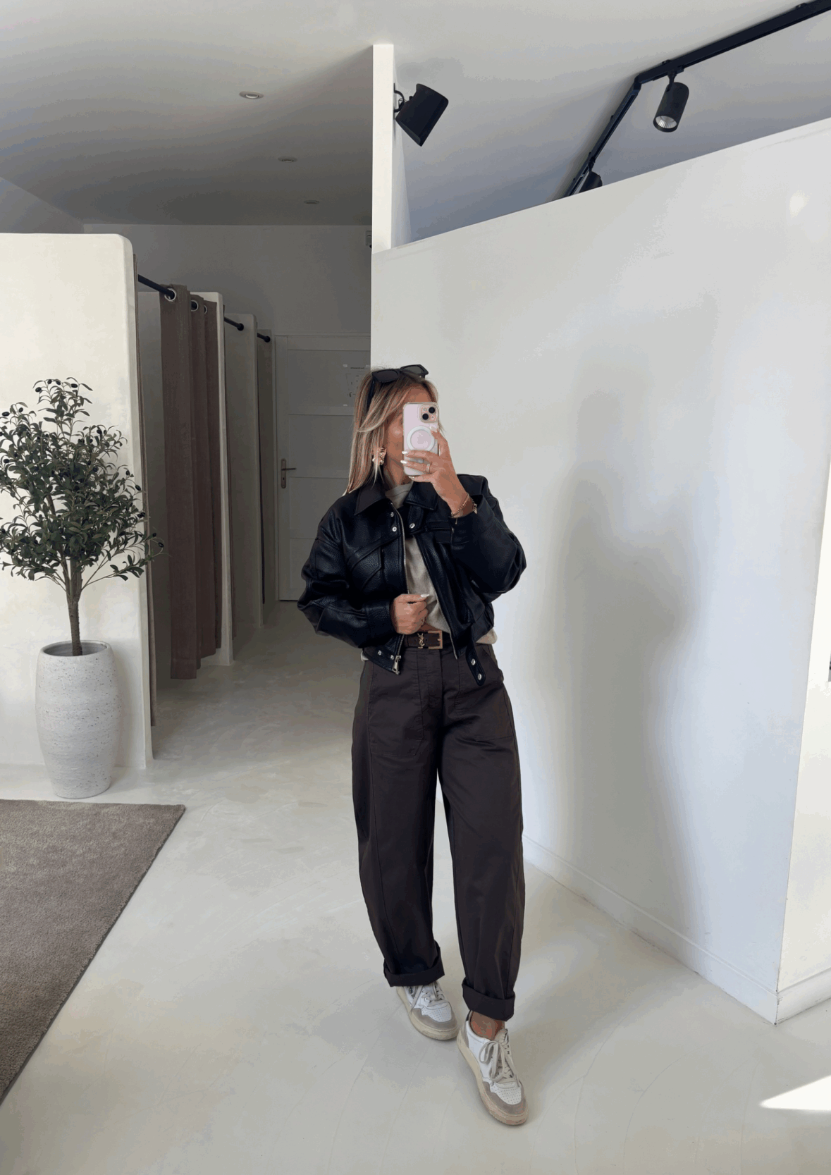 Veste en simili cuir noir, tendance et polyvalente avec ses grandes poches sur le devant, idéale pour compléter un look rock ou casual-chic.